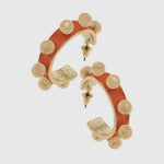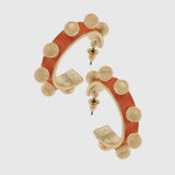 Make a statement with these Jenna chunky studded hoop earrings. Crafted from a base metal and draped in a warm, golden plating, these earrings exude a sense of sophisticated luxury. The warm hue of the orange enamel material adds a pop of color, and the 1.5” length ensures a bold look that will be admired.