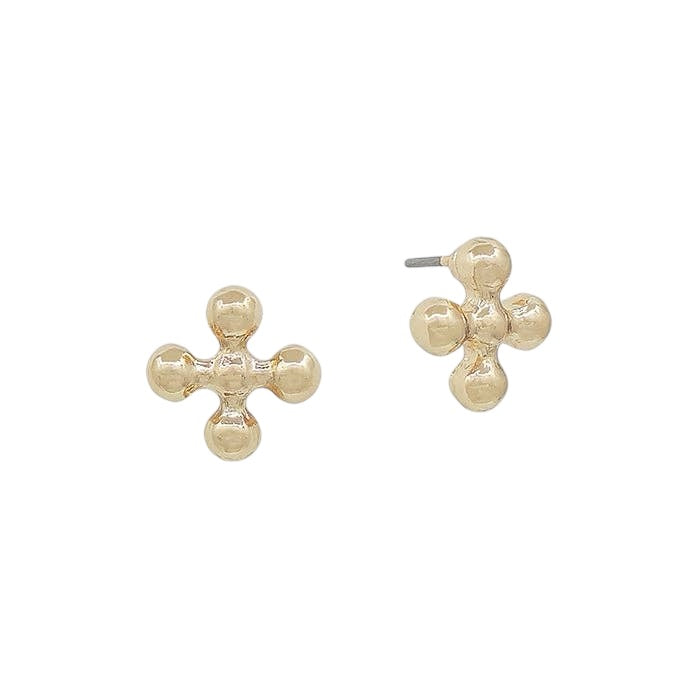 Gold Ball Shaped Cross Stud Earrings (Water Resistant)