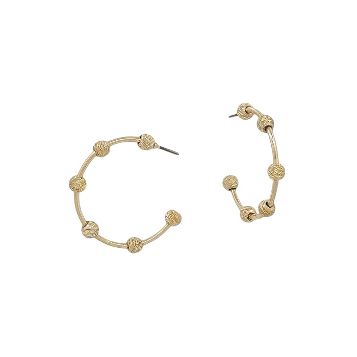 Looking for water-resistant gold hoop earrings with a chic textured ball design?