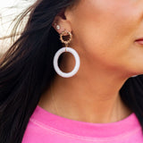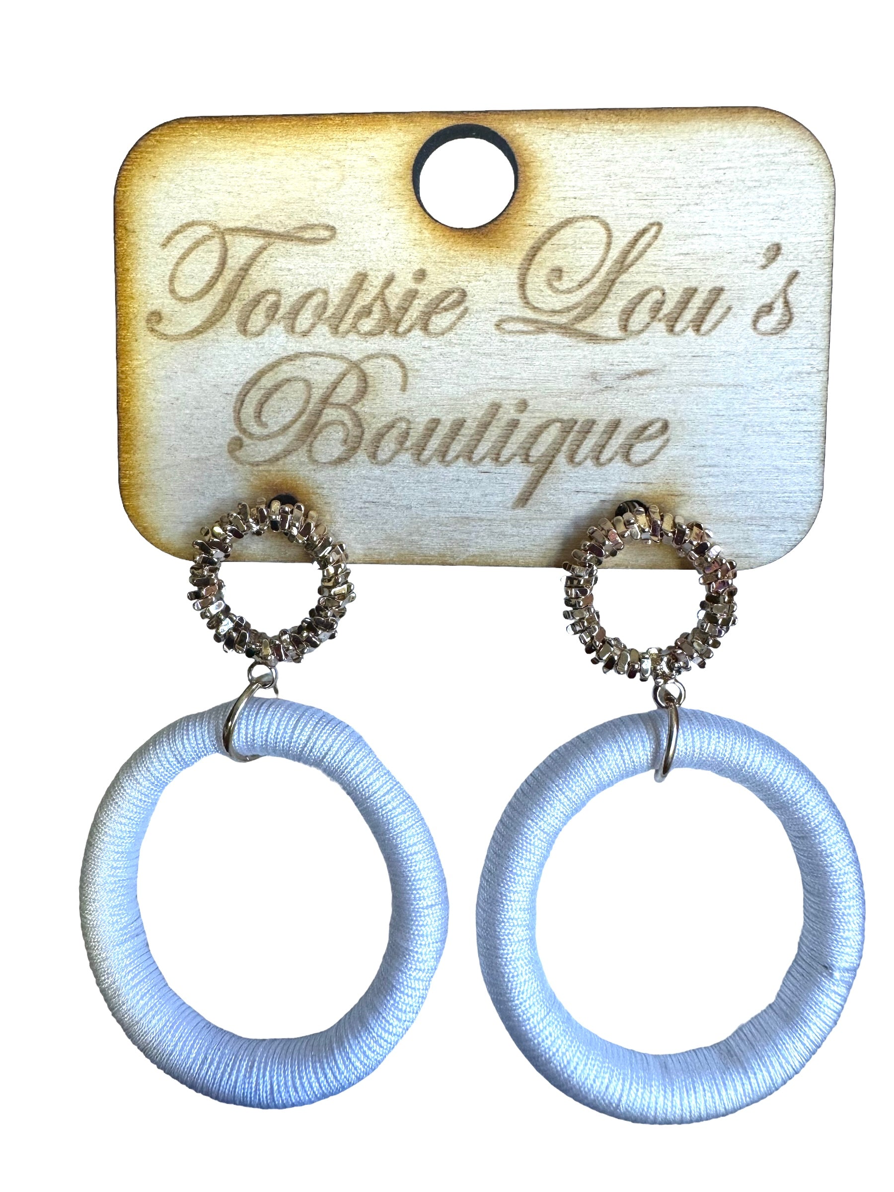 Exude effortless elegance with our White Threaded Hoop Earrings. These stunning earrings feature intricate white threading and luxe gold nugget studs. Embody sophistication with this timeless accessory.