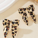 Add a playful pop to your outfit with our Leopard Bow Earrings. These trendy earrings feature the fierce leopard print combined with a charming bow design. A must-have for any fashionista seeking a unique accessory. (Meow-vellous!)