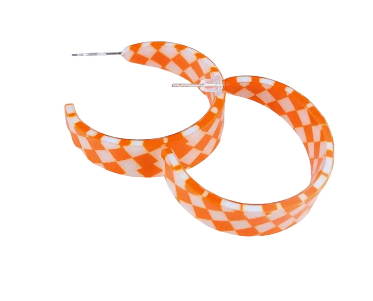 Orange Checkered Hoop Earrings