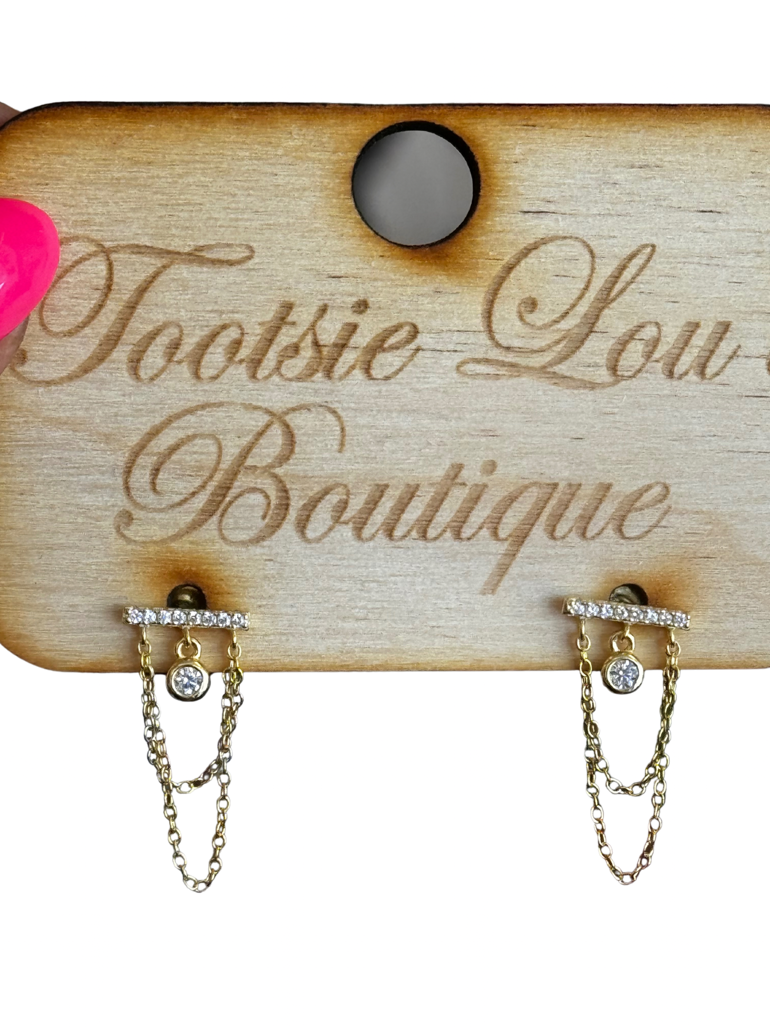 Bara Boheme Gold Triple Chain and Solitaire Stud Earrings