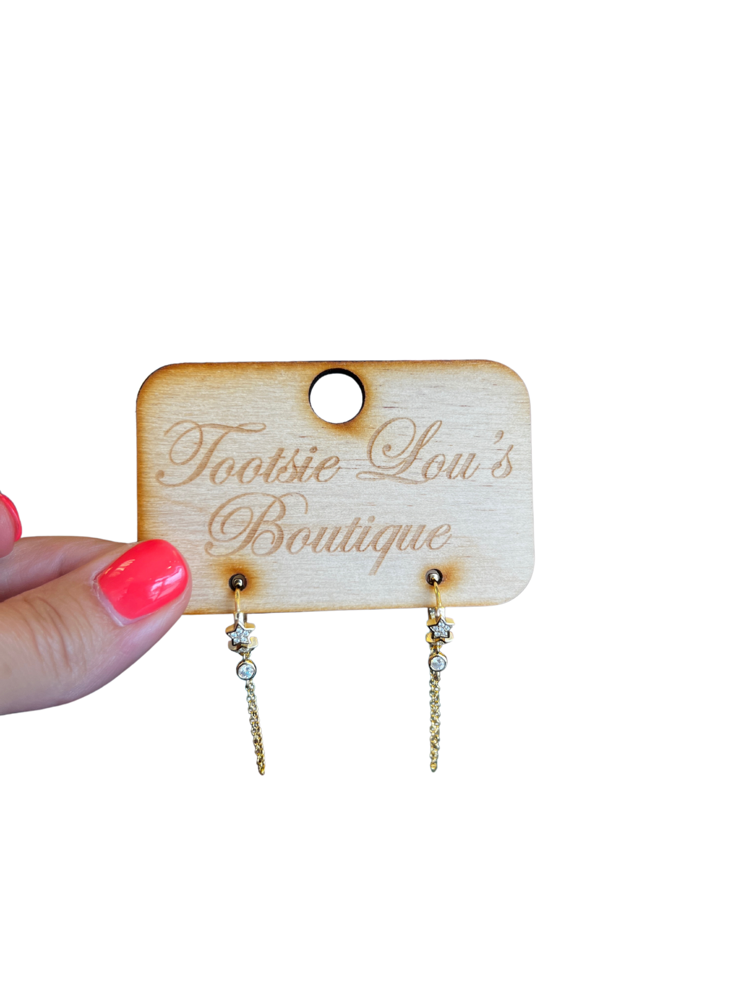 Bara Boheme Hoop Hugger Double Star and Solitaire Earrings
