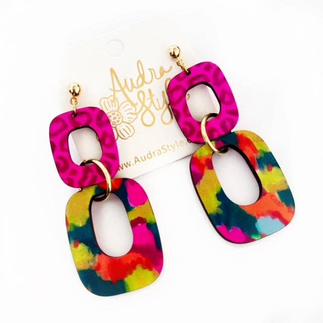 Floral Yellow/Pink/Blue Drop Beaded Earrings