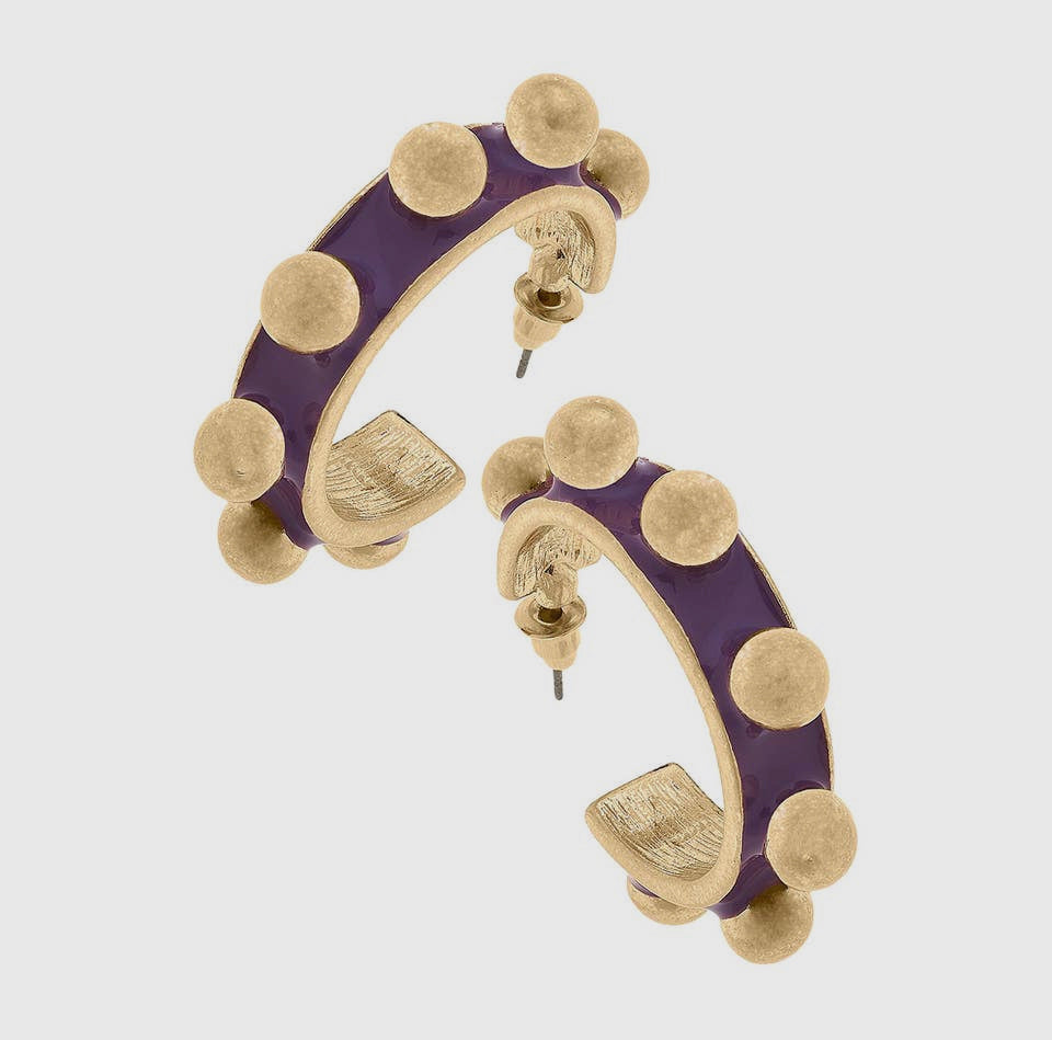 Jenna Chunky Studded Hoop Earrings - Purple