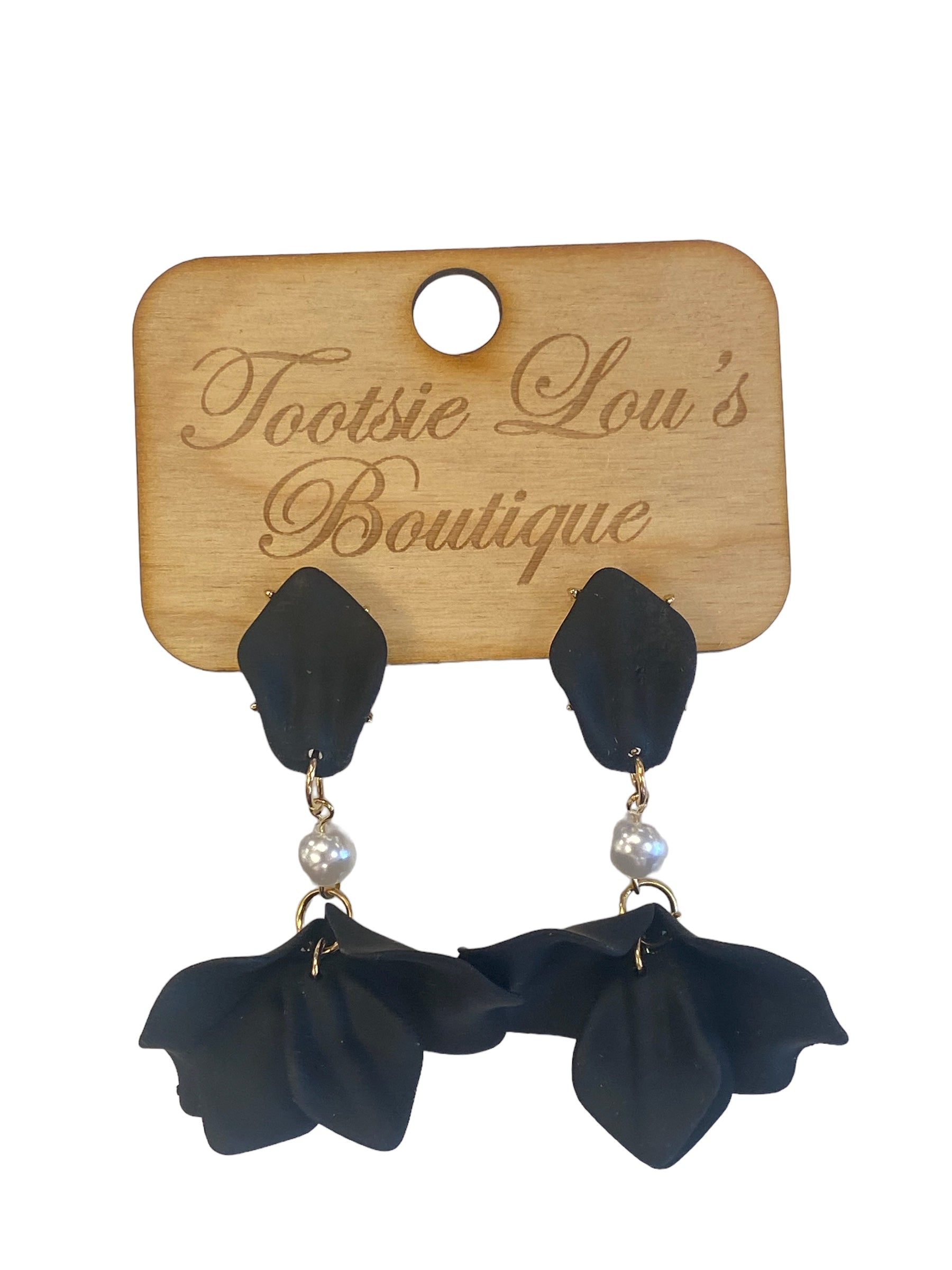 Black Flower & Pearl Earrings