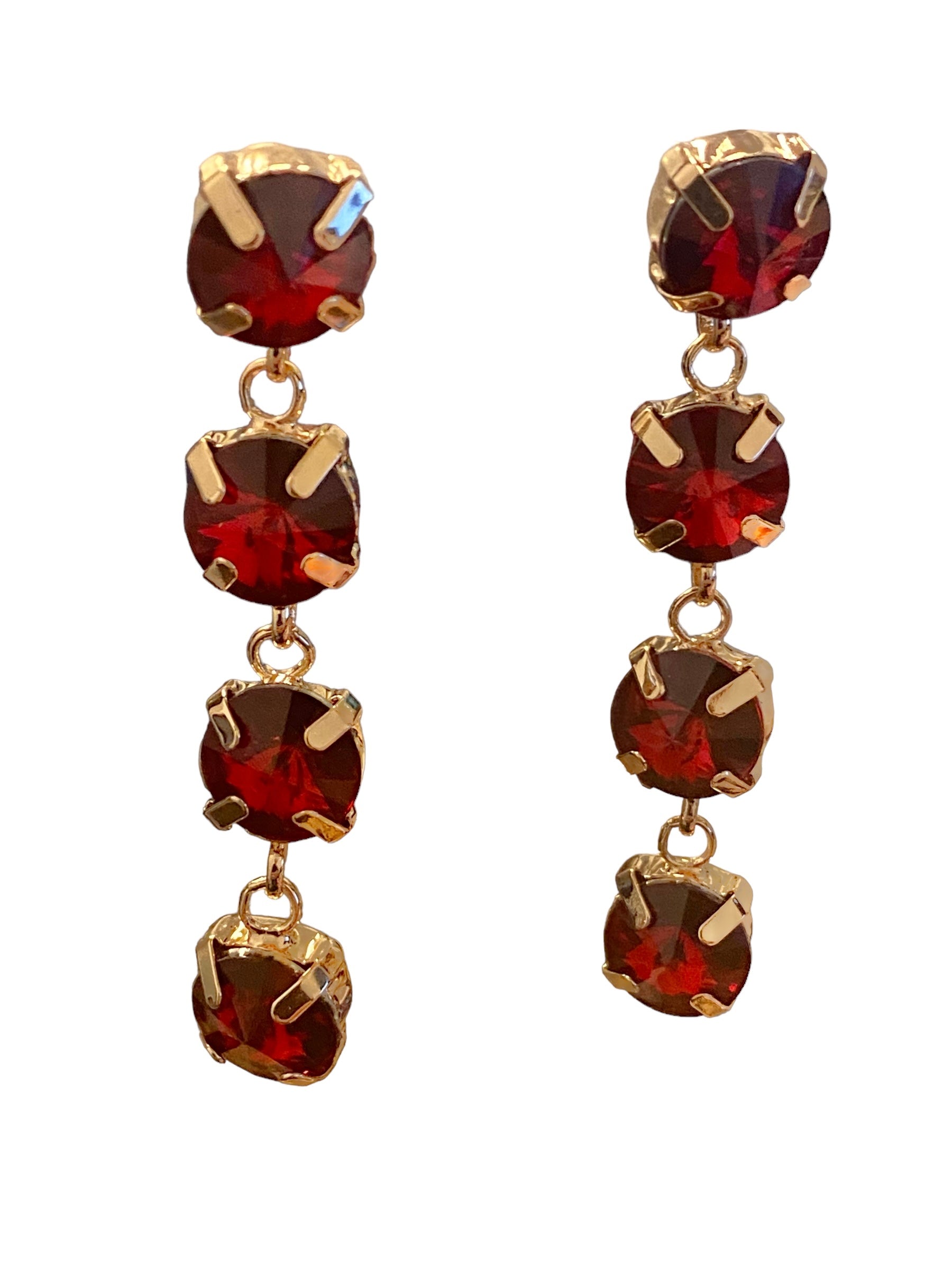 Rhinestone Dangle Earrings - Red
