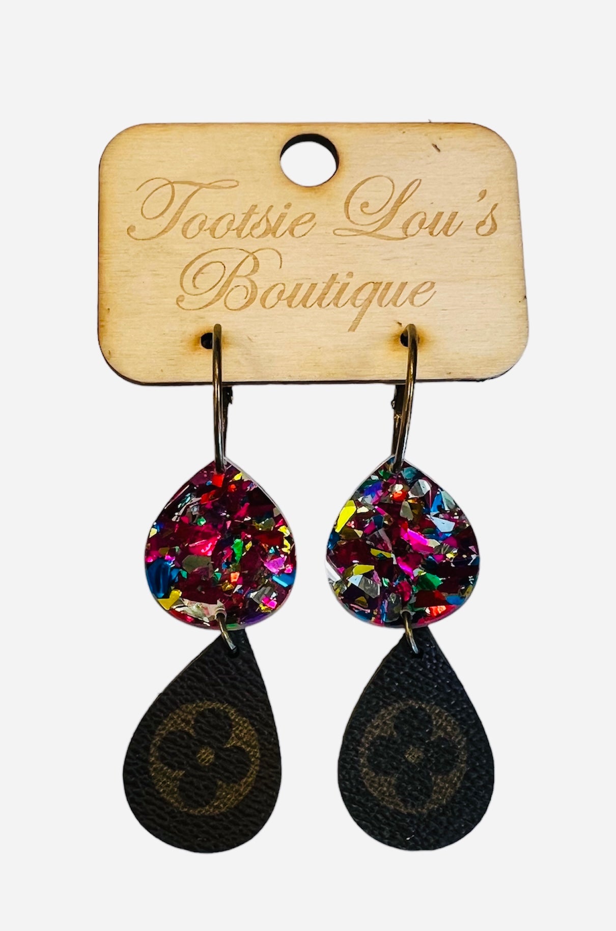 LV Rainbow Glitter Acrylic Earrings