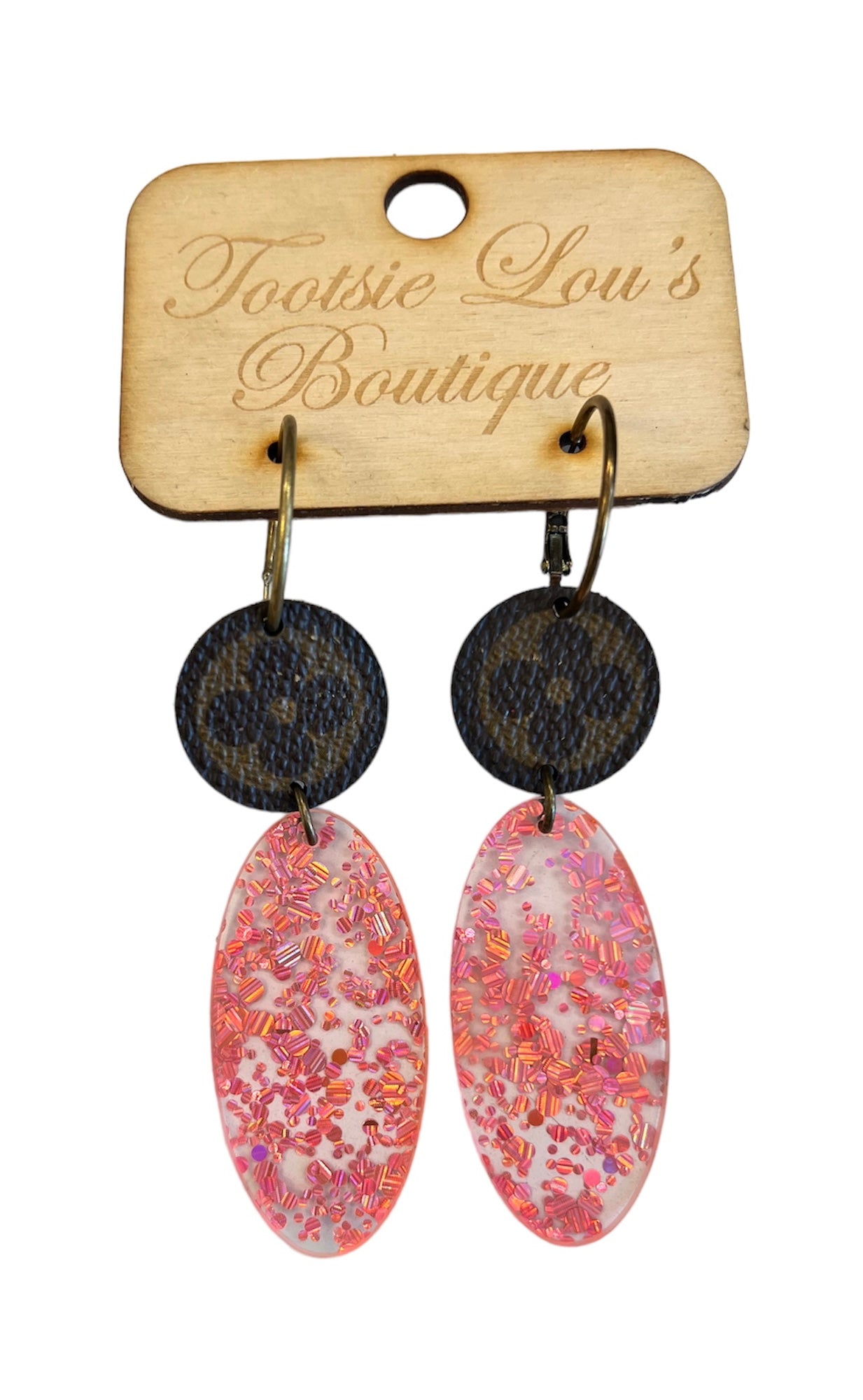 LV Pink Glitter Acrylic Earrings