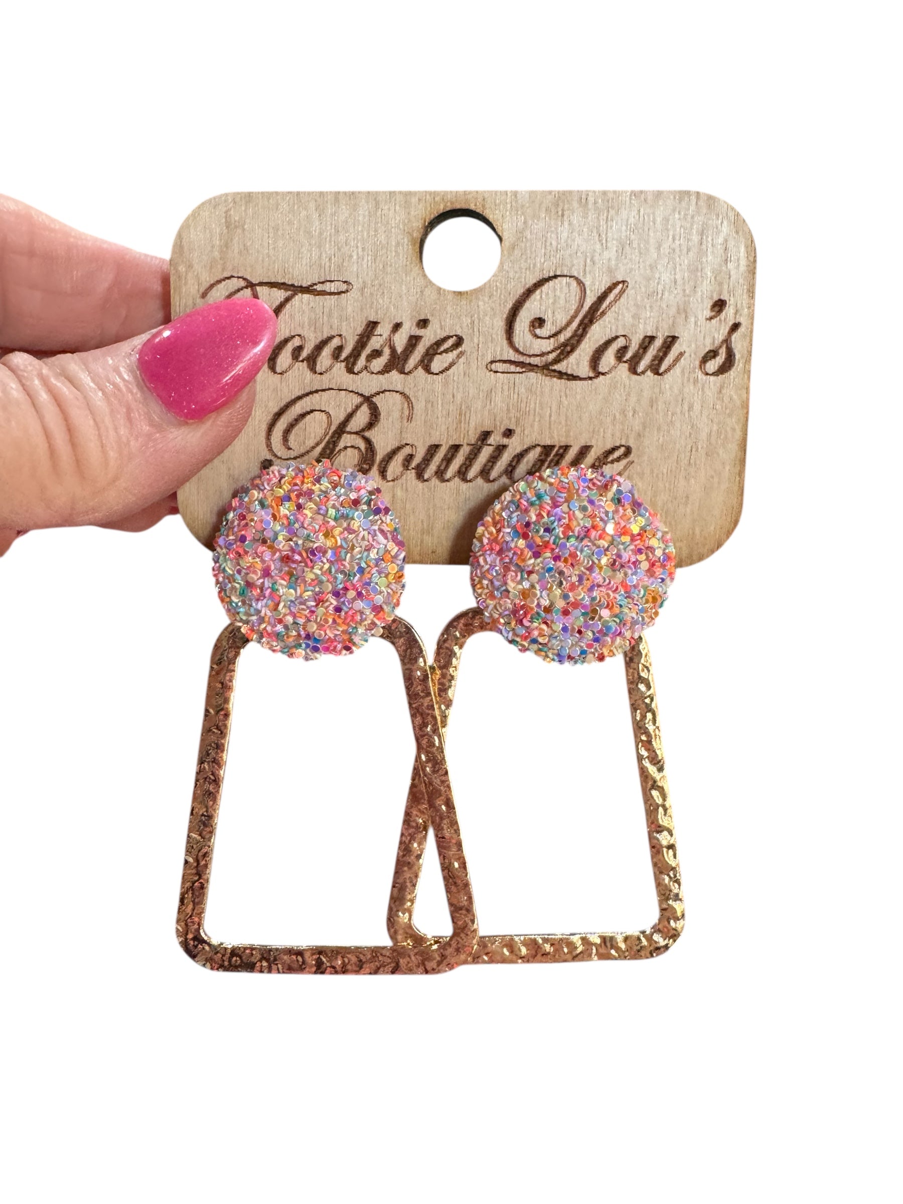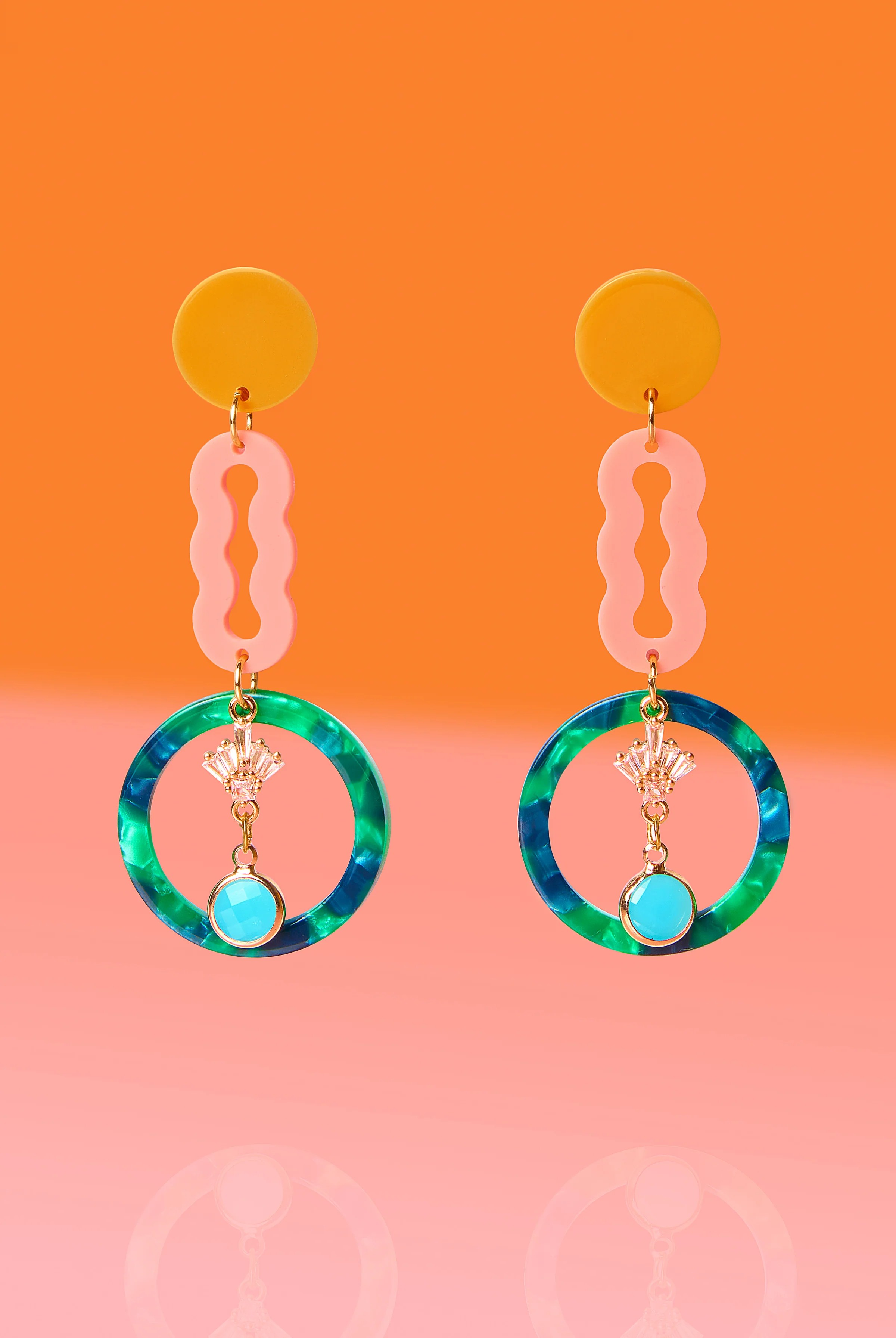 Gold Beaded & Light Blue Crystal Hoop Earrings (Water Resistant)