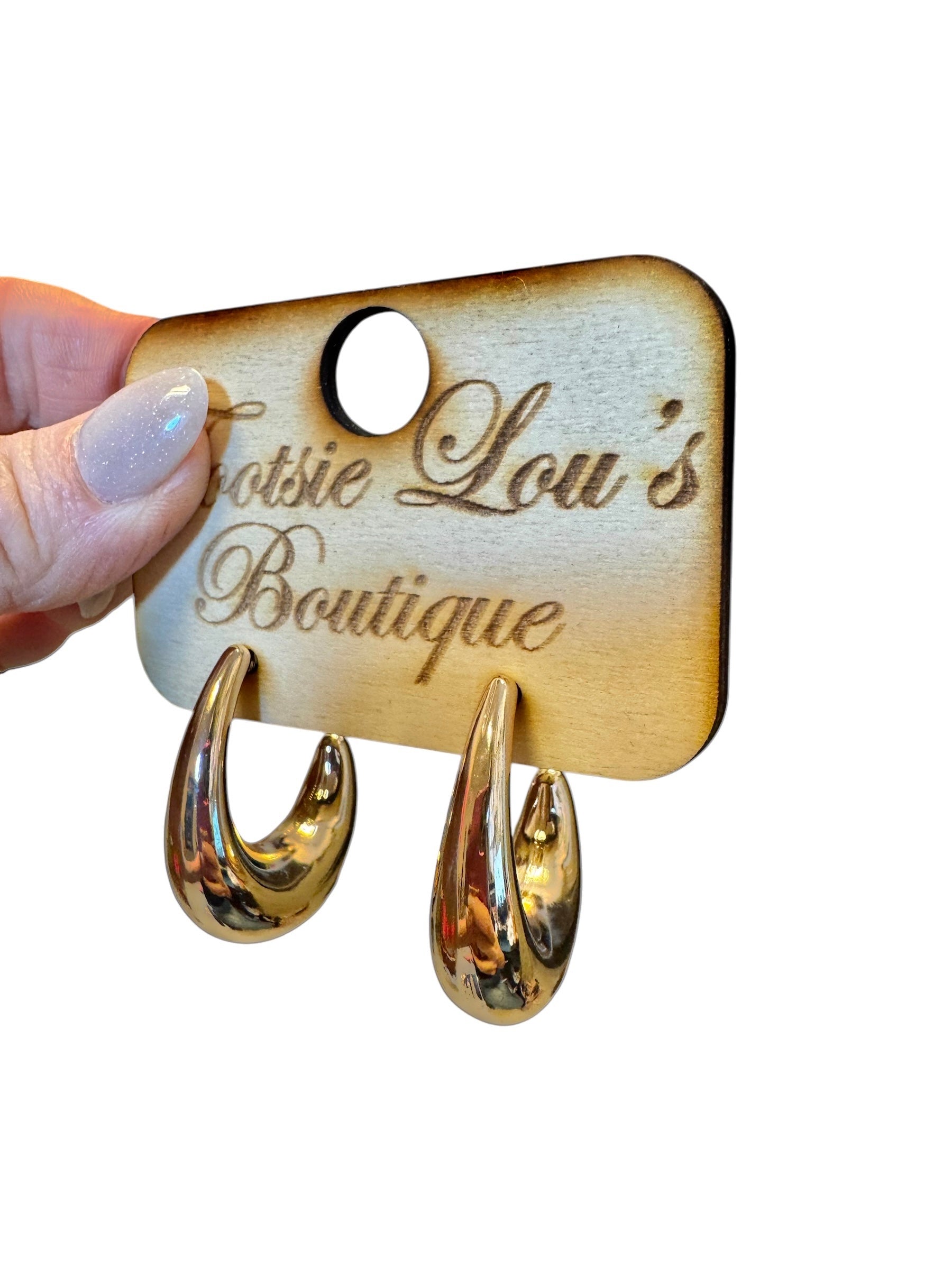 Gold Chunky Teardrop Earrings (Water Resistant)