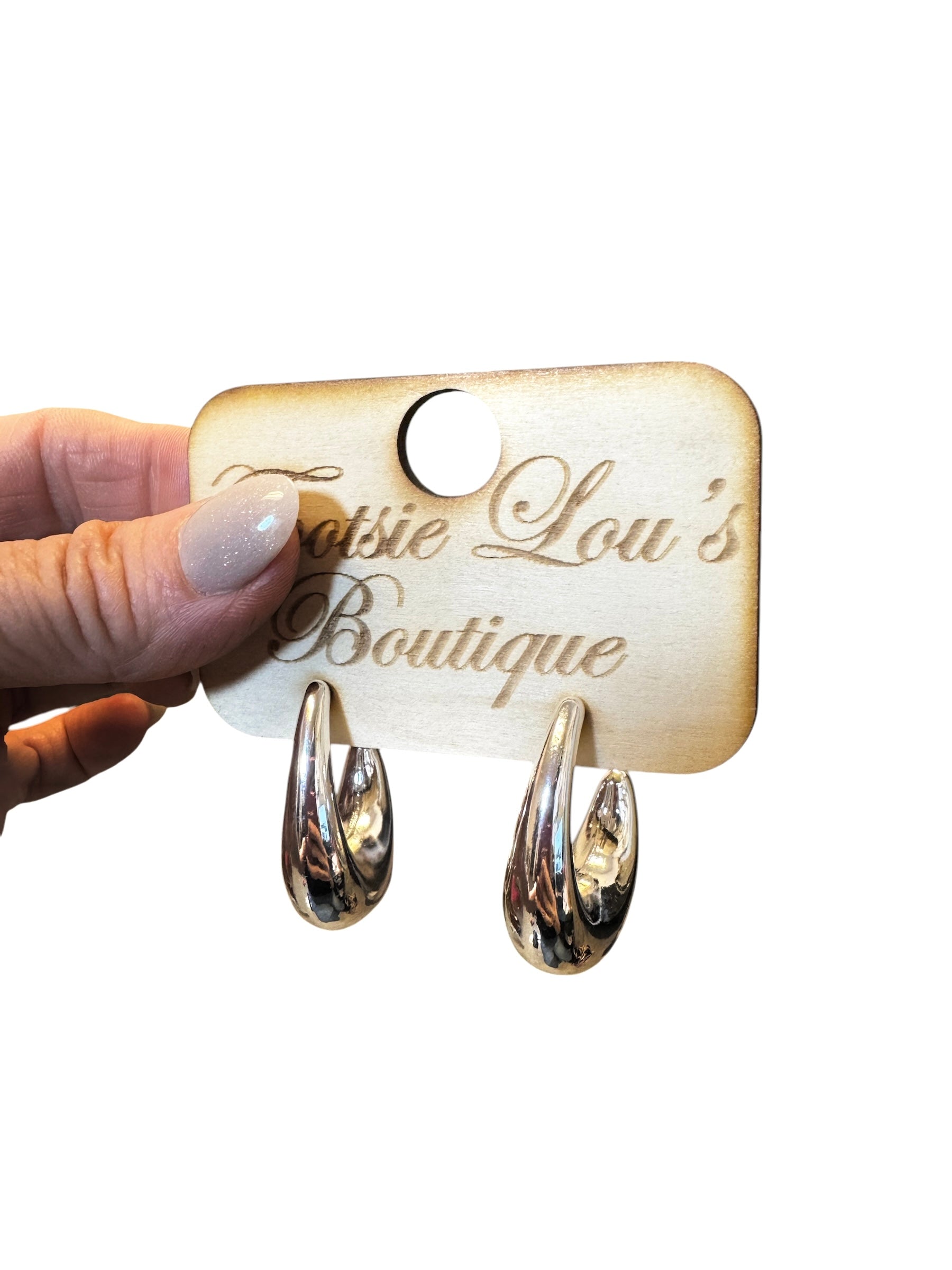 Silver Chunky Teardrop Earrings (Water Resistant)