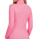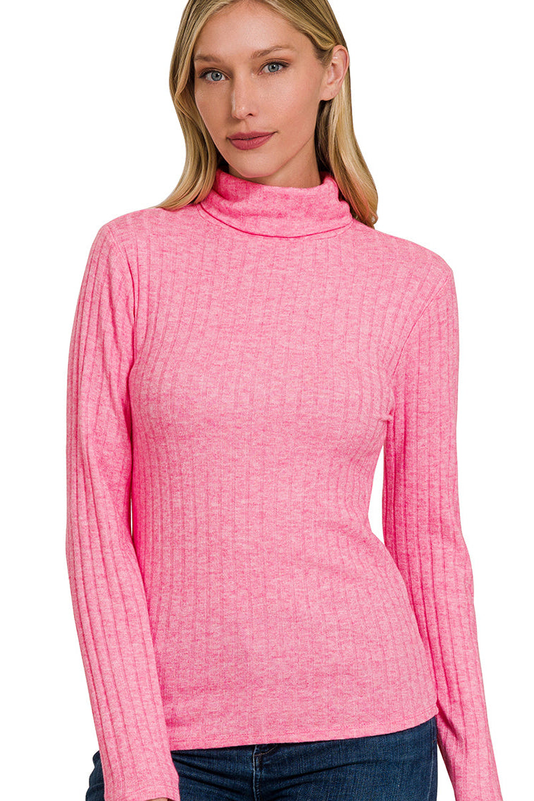 Brighten your wardrobe with our Fuchsia Ribbed Mock Neck Top, the perfect blend of comfort, style, and bold color. Crafted from a soft, stretchy ribbed knit, this fitted long sleeve top hugs the body beautifully while offering incredible flexibility and ease of movement. The sleek mock neck adds a touch of sophistication, making it an ideal layering piece for jackets, cardigans, shackets, or vests, yet stylish enough to wear solo. With a total body length of approximately 25" and a 29.5" bust (measured from size small), this top provides a flattering silhouette that works effortlessly for both casual and dressier outfits. Made from a luxe blend of rayon, polyester, and nylon, it delivers the perfect balance of softness and structure. A vibrant essential for fall, winter, and year-round styling.