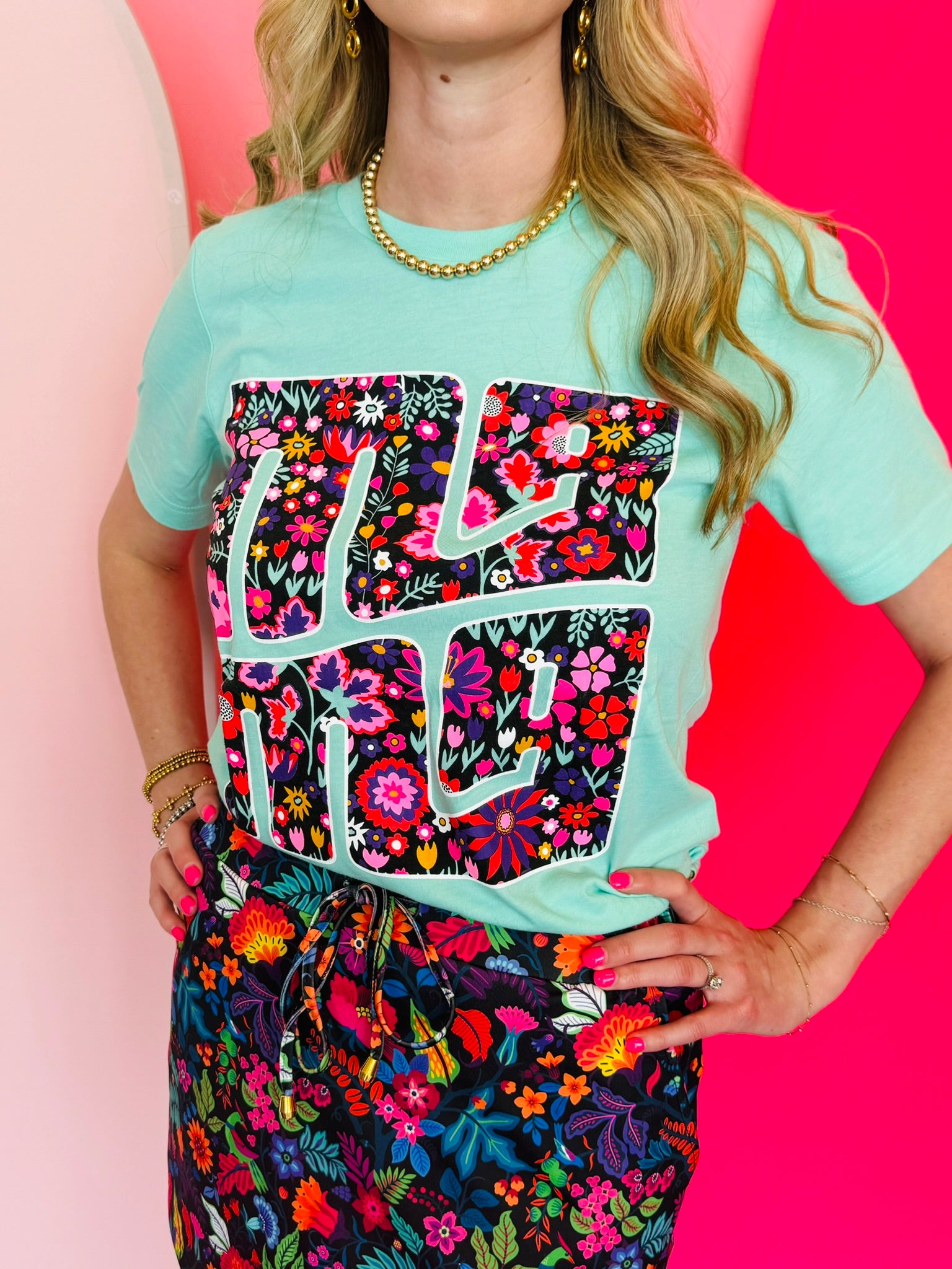 Get ready to bloom in our Mama Stacked Flower Tee! This mint tee is perfect for any mama, featuring colorful floral letters that add an extra touch of sweetness. Embrace your mama power with this playful and stylish top.