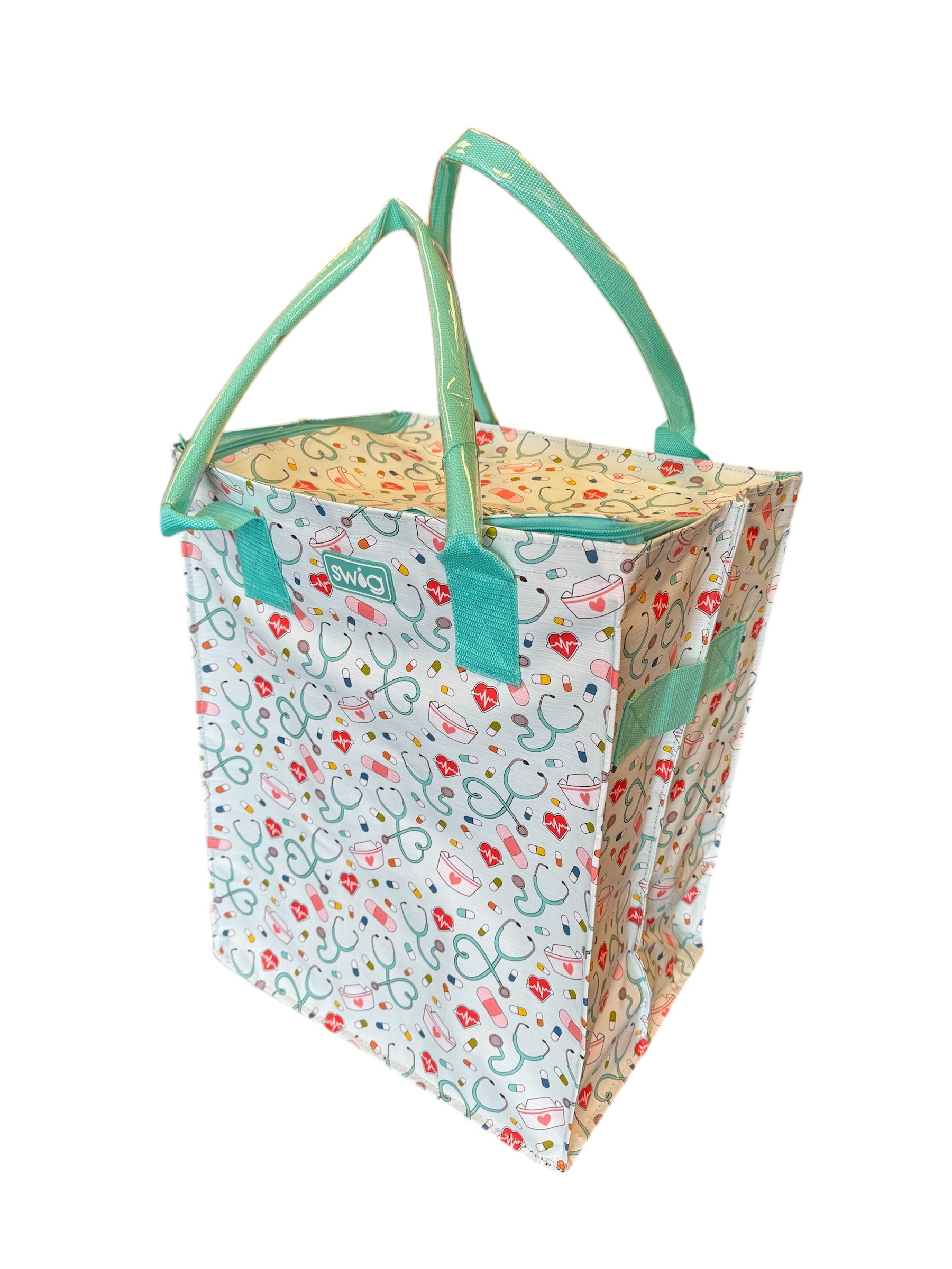 Swig Life's Mega Tote Bag on wheels is made for all of life's adventures. Perfect for hauling all the nurse stuff! From the farmer's market, ballfield, and girl's weekend, this large durable swivel bag will make hauling easy! Zip cover keeps items protected and features a wide pocket for easy access items.