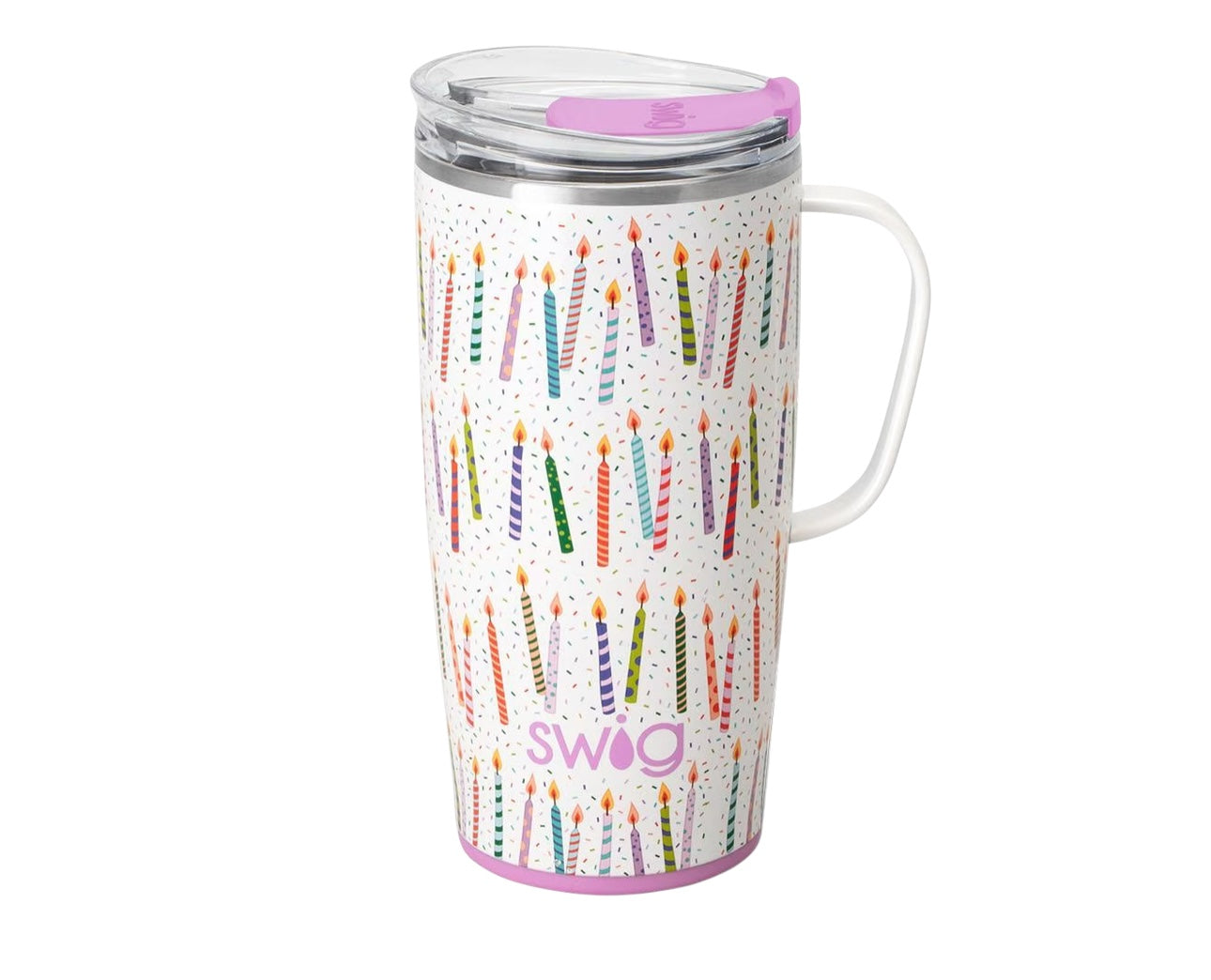 For those who love our classic 18oz Travel Mug but need a little bit more in their cup, our 22oz Insulated Travel Mug is a must-have. With more ounces to sip and a cup holder-friendly shape, she's got what it takes to get through the morning commute and the rest of your day. Holds up to 22oz
