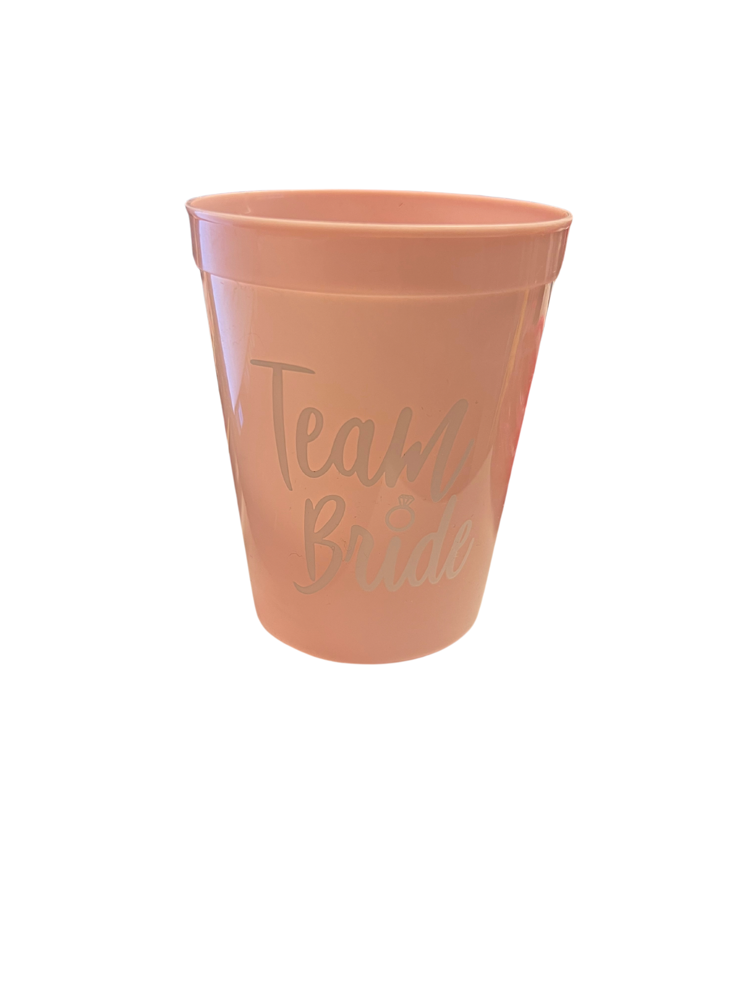 Ditch the boring solo cups and show your support for the bride-to-be with this Team Bride Plastic Cup! Perfect for bachelorette parties, this playful pink cup features white letters and holds all your favorite beverages. Cheers to the bride and her squad!