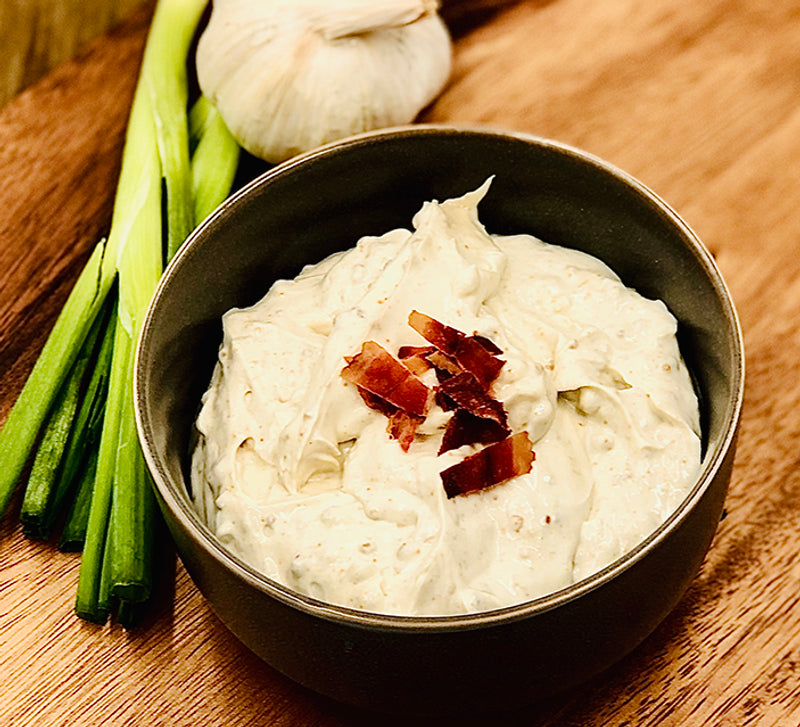 Perfect duo of smoky bacon flavor paired with cheddar cheese, excellent with baked potatoes. Contains soy.