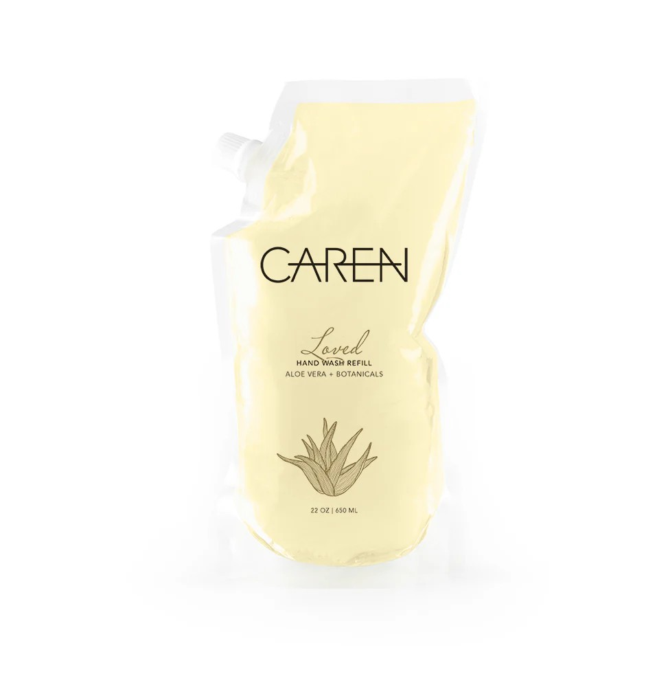 Indulge in our LOVED Hand Wash Refill, featuring iconic scents of woody breeze, enchanting amber, and delicate florals. Made with Aloe Vera, glycerine, and willow bark extract to cleanse, soothe, and soften your hands. Keep your hands clean and hydrated with our non-drying formula.