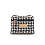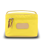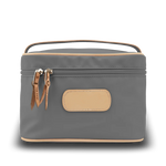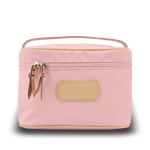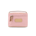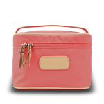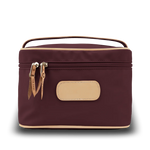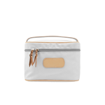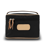 Jon Hart Makeup Case with coated canvas, leather trim, zippered closure, and interior pocket for organized travel.