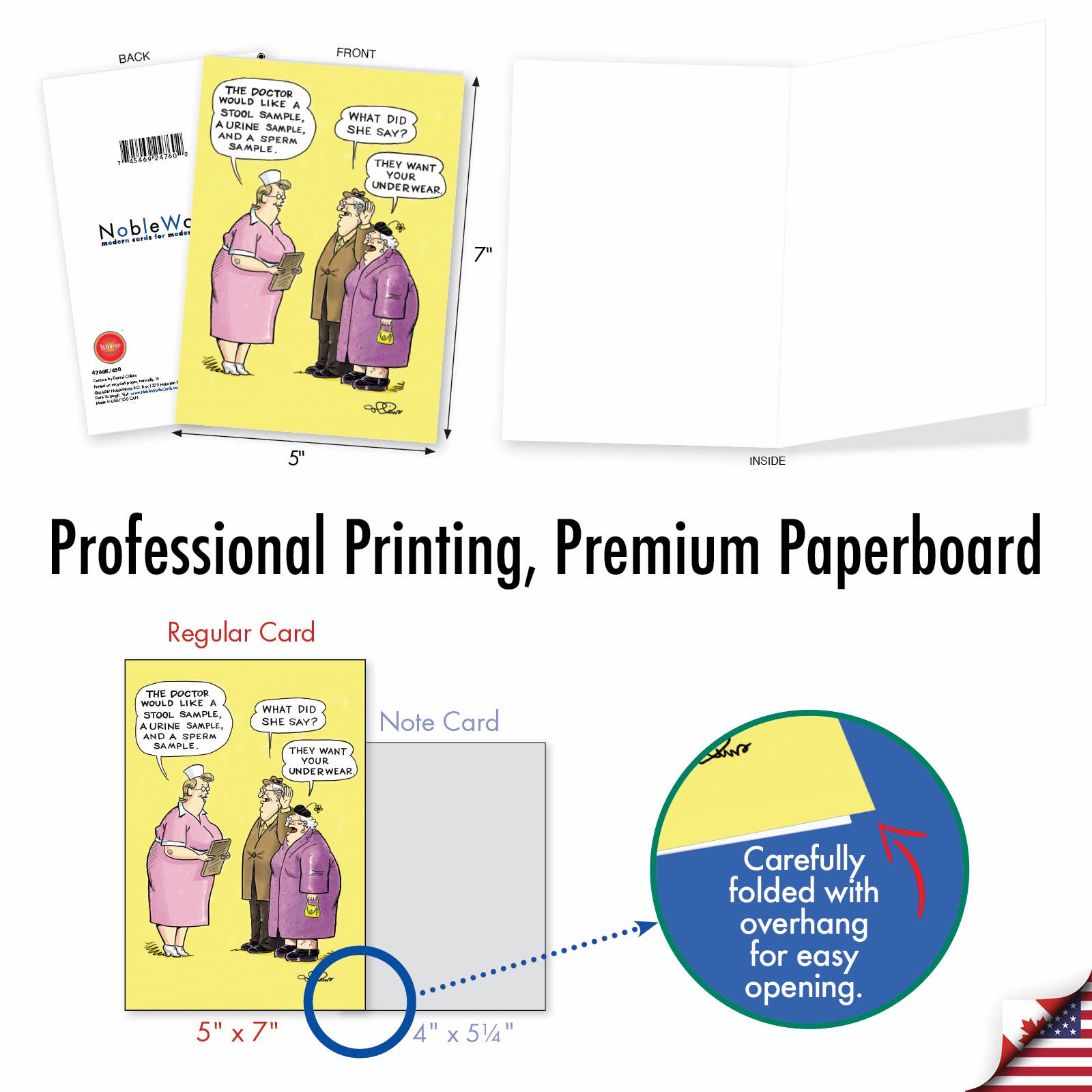 Share a laugh for any occasion with this hilarious, nostalgia-inspired greeting card. The front sets up the joke with a classic scenario: A doctor tells a patient, "The Doctor Would Like A Stool Sample, A Urine Sample, And A Sperm Sample." The hard-of-hearing patient turns and asks, "What Did She Say?" to which his partner replies, "They Want Your Underwear." The inside is left blank for your own personalized message. Printed in the USA, this card is perfect for anyone who appreciates a good old-fashioned joke.