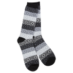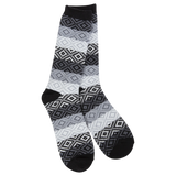 Step into ultimate comfort with the World's Softest Socks - Black Multi. These incredibly cozy crew socks feature a bold, modern geometric diamond pattern in a classic, versatile black and white palette. The eye-catching design is perfectly finished with solid black heels and toes for a clean, sophisticated look. Made from a luxuriously soft blend, they offer a gentle stretch for a perfect, non-binding fit. They truly live up to their name and are a timelessly stylish addition to any sock collection. One size fits most.