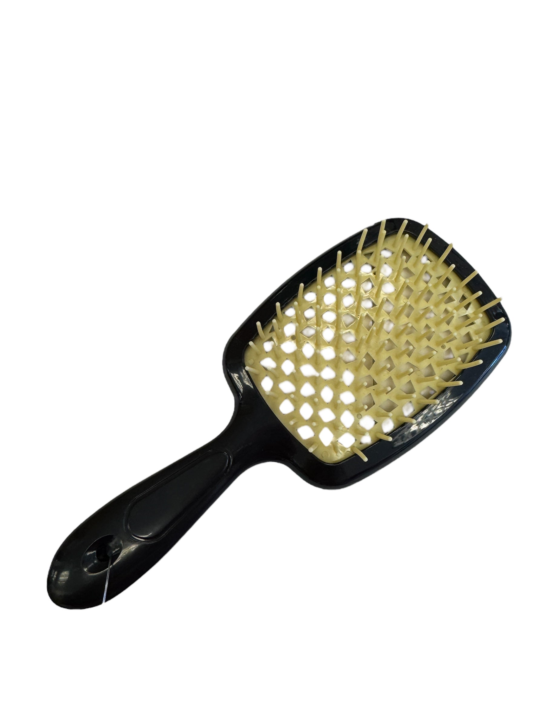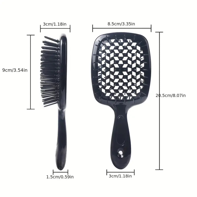 Introducing the Detangler Hairbrush! Our unique vented cushion decreases styling time while the Duo Flex Anti-Static Bristles work their magic. Experience gentle tangle release, reducing breakage and split ends. Smoothly detangle even the most stubborn hair, wet or dry. Give your hair the care it deserves!