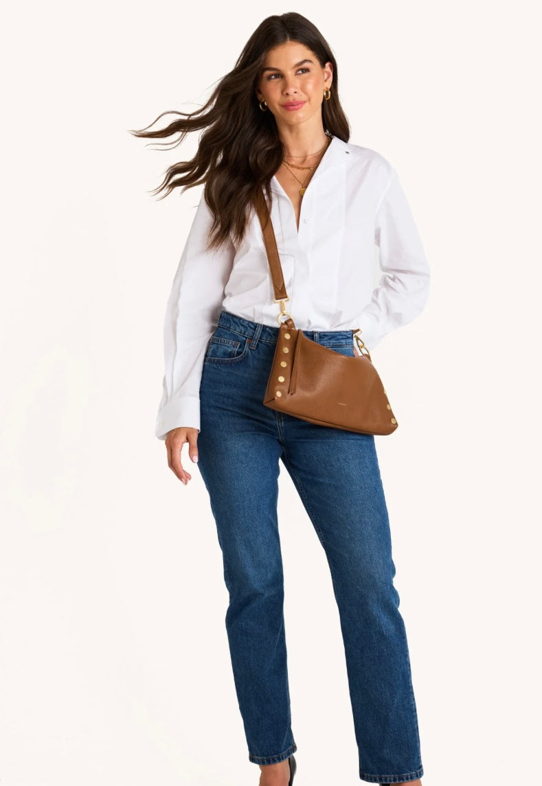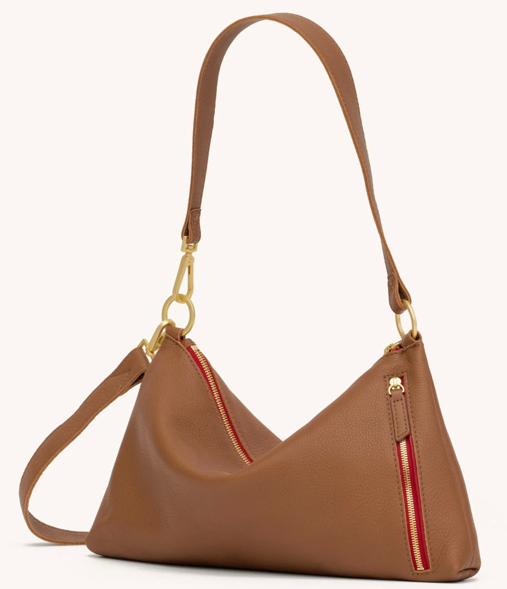 Hammitt Kyle Med Mahogany Pebble/Brushed Gold Red Zip