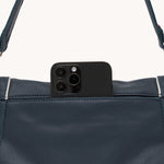 Pebbled leather in rich Nautical Navy with sapphire undertones