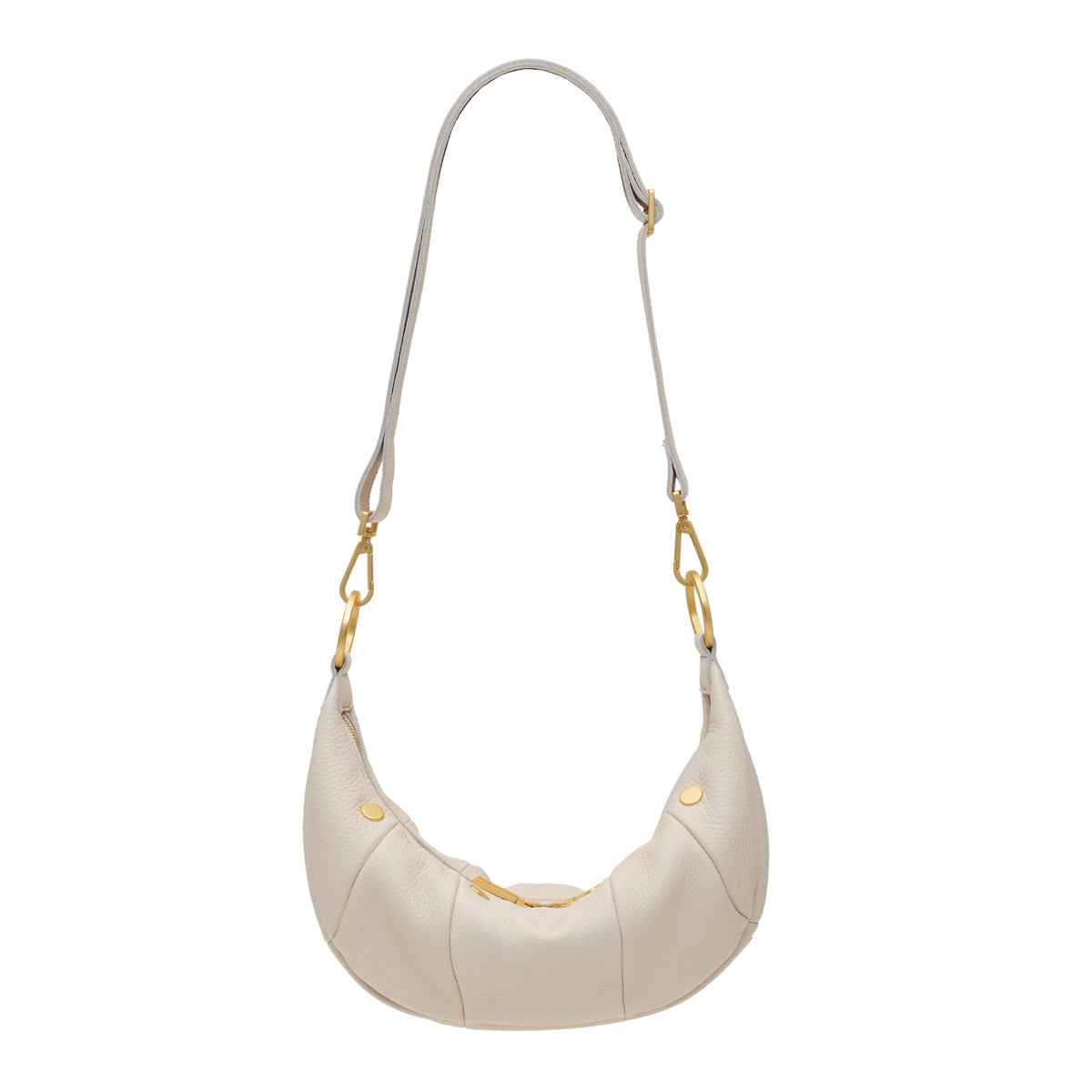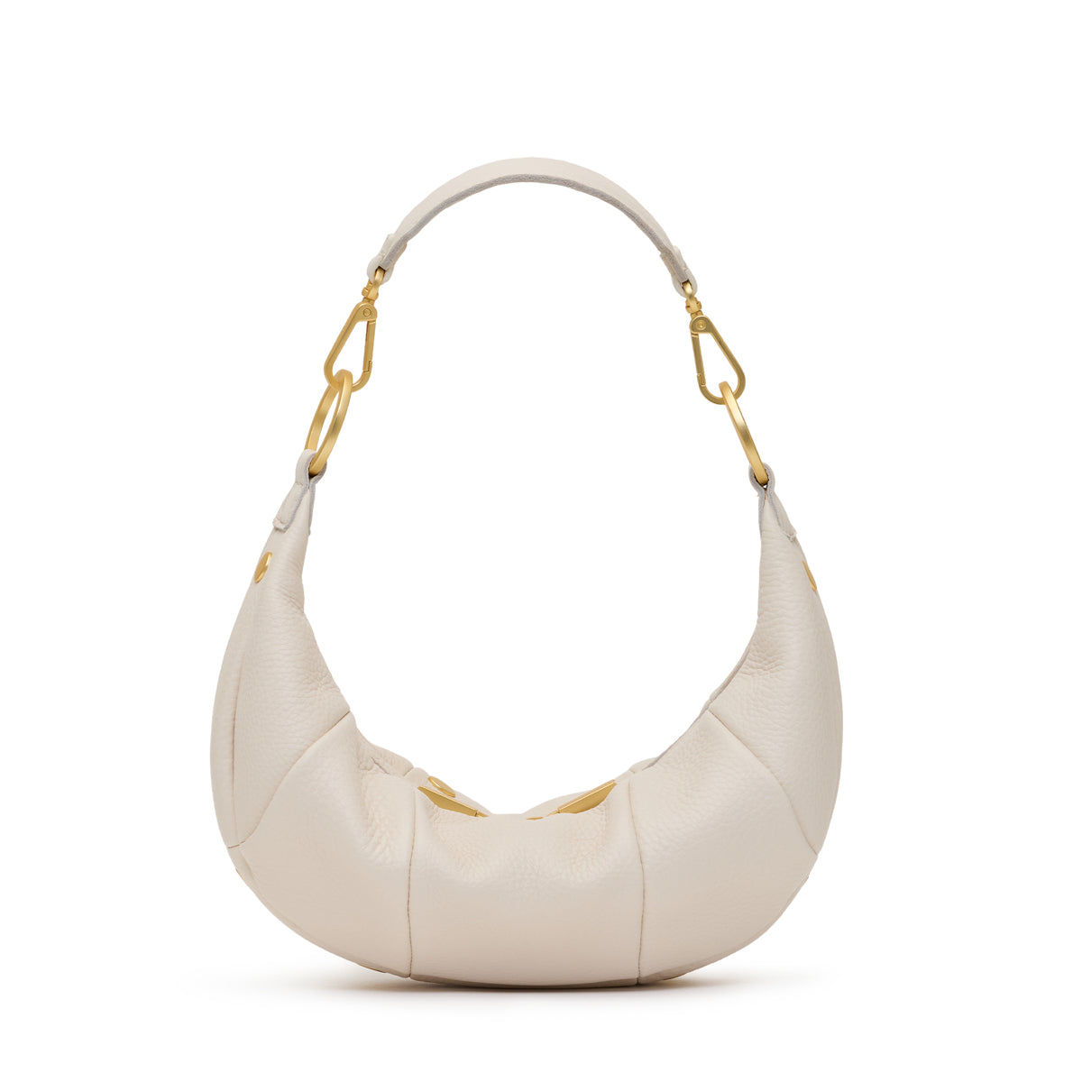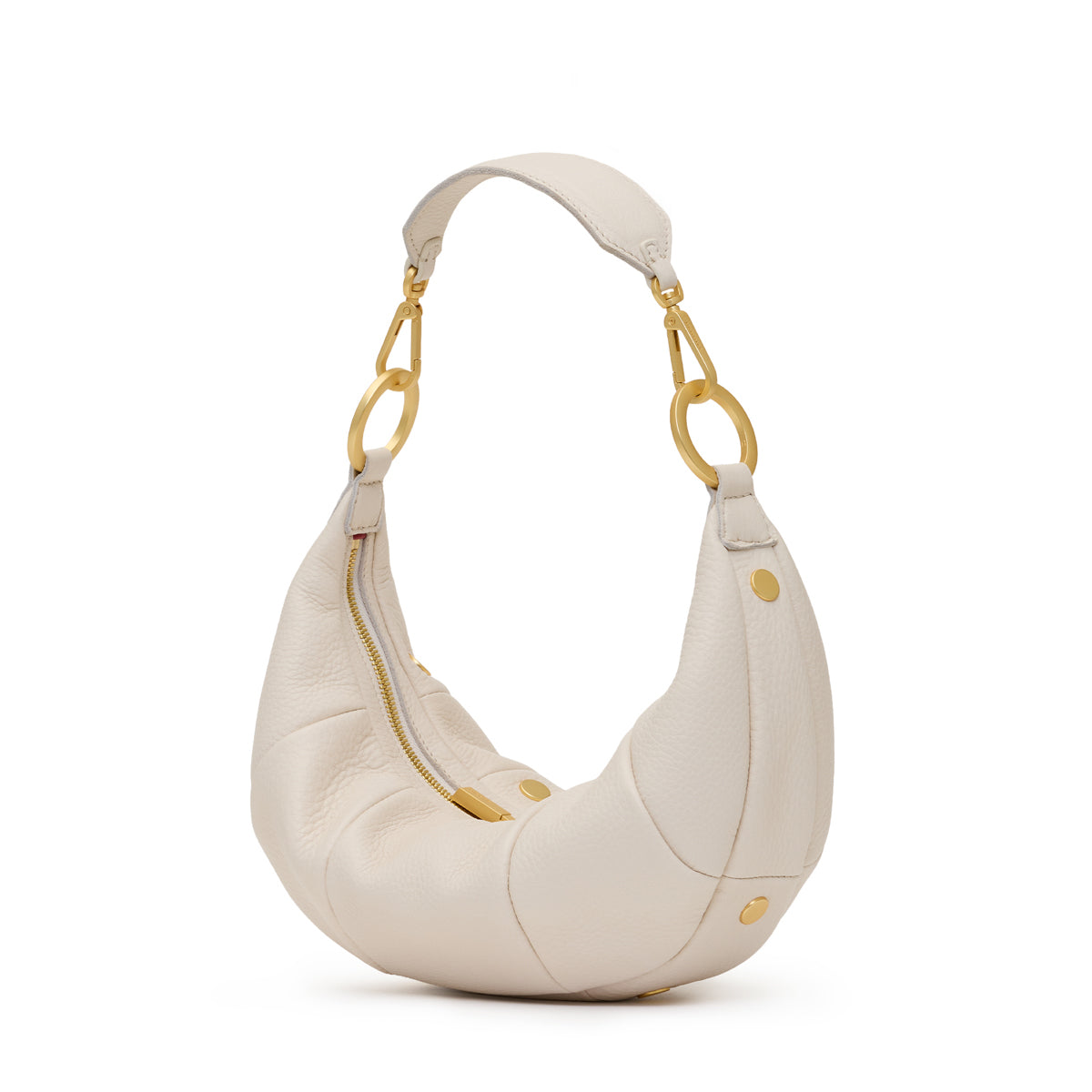 Hammitt Erica SML Calla Lily White croissant bag with gold rivets and straps.