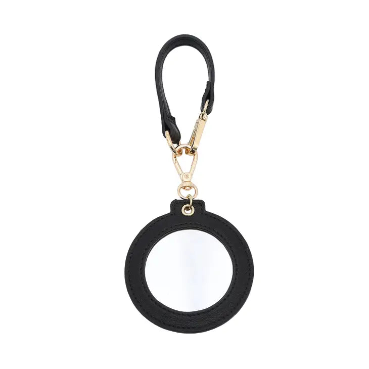 6 Accessory Mirror For Versa Tote Accessory mirror that can be added to any of our totes Vegan leather Dimensions: 3"l x 3"h