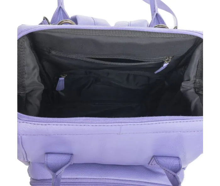 Introducing the Myra diaper bag & backpack - a perfect blend of style and functionality for the modern mom. This lovely lavender purple leather bag features multiple compartments, adjustable comfort shoulder straps, and a spacious design to keep all your baby essentials organized. Chic enough for everyday use, it's the ultimate accessory for fashionable, on-the-go parents.