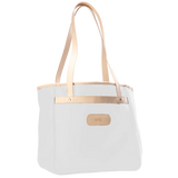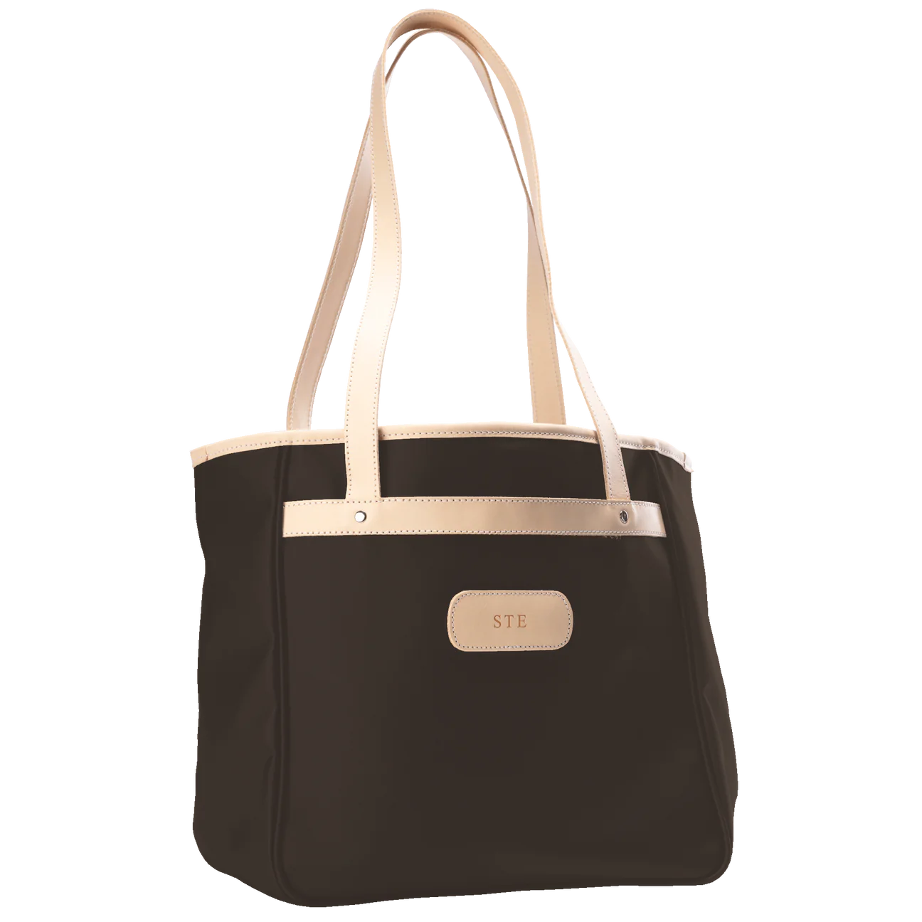 Meet the Jon Hart Amelia Tote—the tote that truly does it all. Designed with both style and functionality, this versatile bag features a padded laptop sleeve, making it perfect for work, travel, or daily errands. The spacious interior and multiple pockets keep your essentials organized, while the trolley sleeve slides over your luggage handle for smooth airport travel. Crafted from durable vinyl-coated canvas with premium natural leather trim, it’s built to handle years of adventures in timeless style. Thoughtful details like hooks for an optional crossbody strap (sold separately) make carrying a breeze, whether you’re commuting or on the go. Elegant yet practical, the Amelia Tote is ready to be your new everyday favorite.