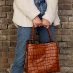 Brown Olivia Crocodile Contrast Hobo Bag