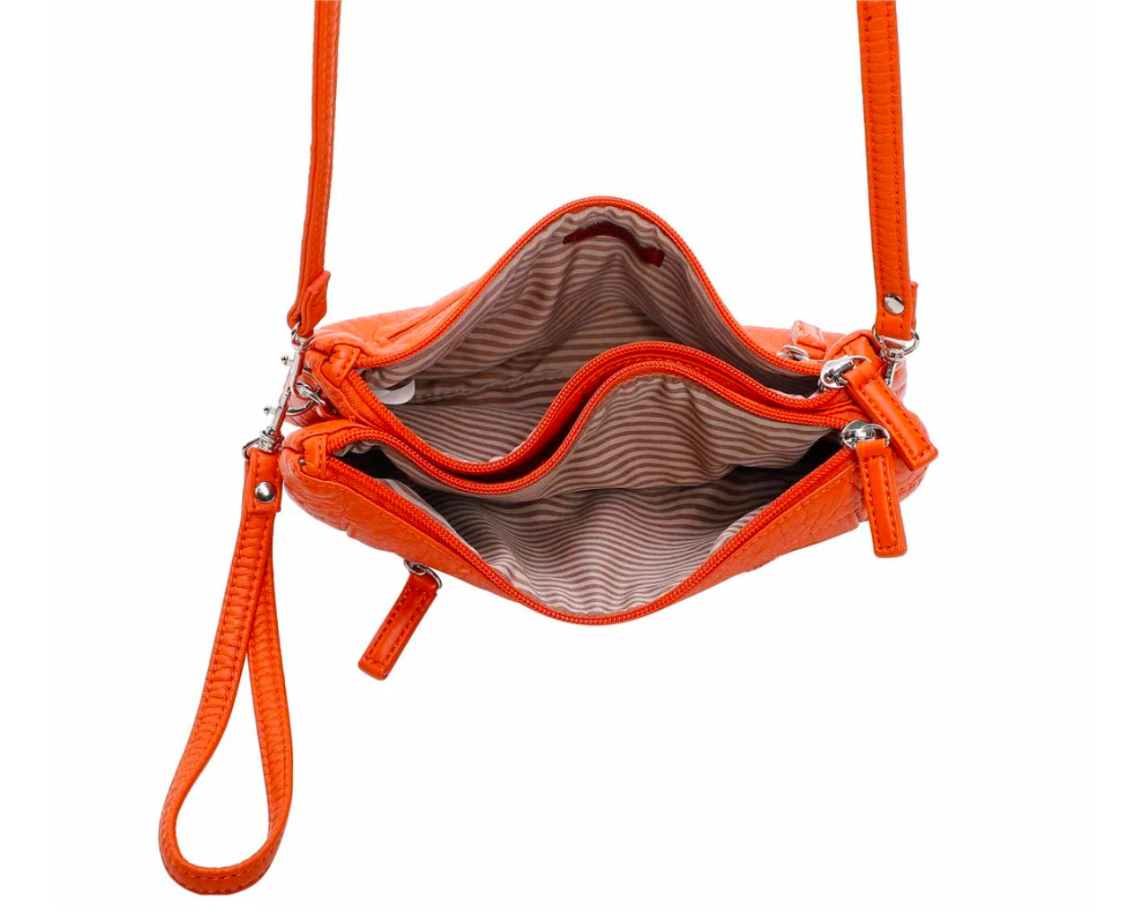The Malie three-way bag is made out of special one-of-a-kind soft vegan leather wristlet. This bag can be worn in multiple ways! Wristlet and crossbody! It is an amazing multi-functional wristlet!