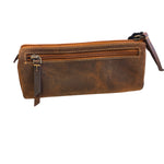 The Myra Kurlingham Triangular Multi Pouch combines sleek design with practical functionality. Made from high-quality leather, this stylish pouch features two zipper closures—one on the top and another on the side—for easy access and added security. Its modern, triangular shape makes it perfect for organizing your essentials, from coins and cards to makeup and small accessories. Whether you're at home or on the go, this compact pouch ensures everything stays neatly in place.