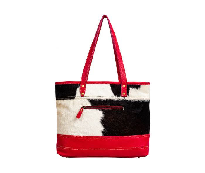 This wonderful bag presents a compelling design, offering great form and function! The beautiful hair-on hide front and back are accented perfectly with sumptuous hot pink leather. The roomy interior offers plenty of space, along with a separate zippered compartment. The back also has a handy zippered pocket. Sturdy carrying straps in the gorgeous hot pink leather complete this great bag.