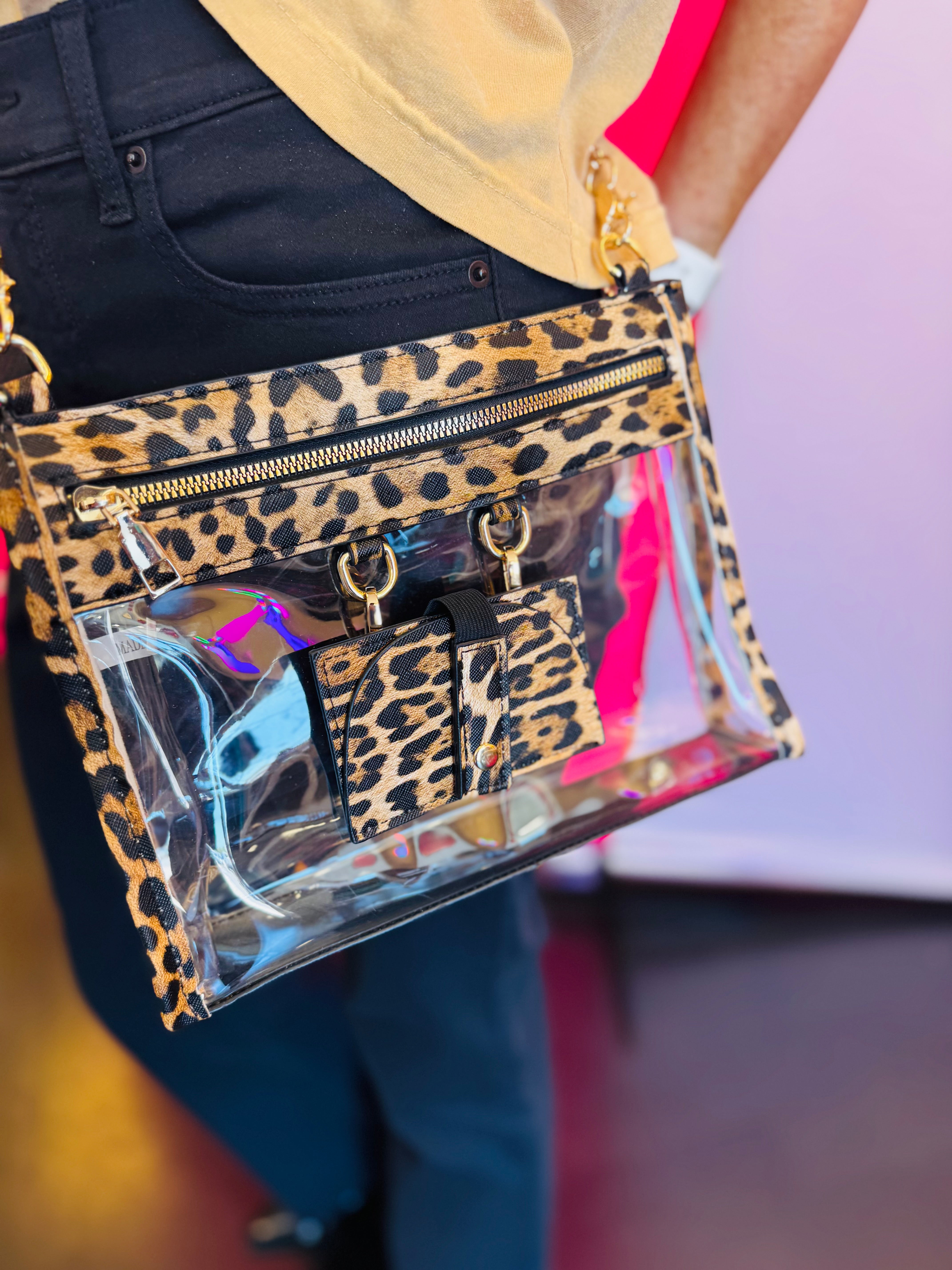 Leopard Clear Gameday Crossbody Bag with Sunglasses Holder
