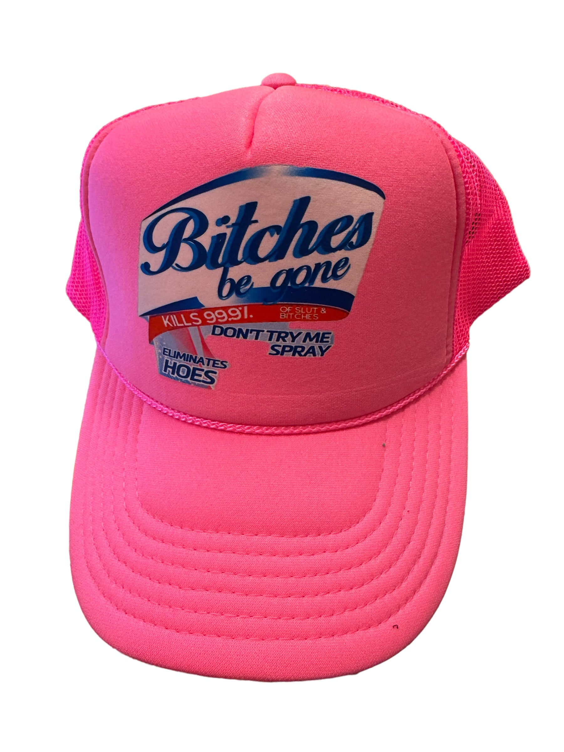 Say goodbye to those pesky bitches with our Bitches Be Gone Trucker Hat! Handmade in Georgia, this candy-coated cap features a 100% polyester foam front and 100% nylon mesh back. With its adjustable snapback, one size fits all for ultimate comfort. Trust us, this trendy and flattering trucker hat is a must-have for your next girl's trip!