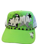 Elevate your mom game with our Neon Green Mama Trucker Hat! Stand out in style with bright neon green, a studded and chenille Mama patch, a sparkling glitter star, and a rhinestone and bead trucker hat chain. Perfect for fierce mamas, everyday wear, or as a fun gift.