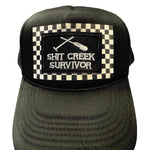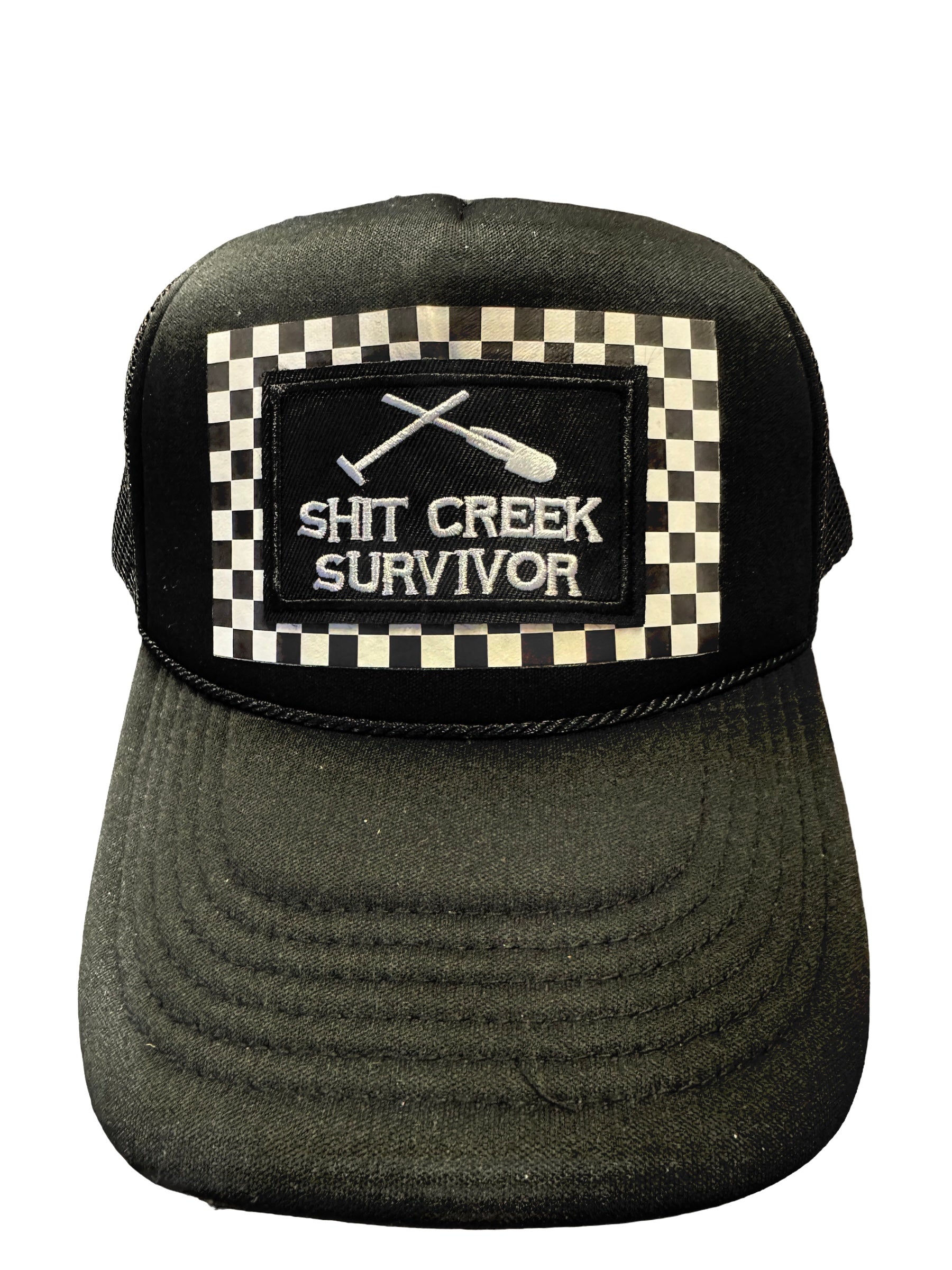 Stay afloat on Shit Creek with our Survivor Trucker Hat. The black foam keeps you cool while the black and white checkered graphics add a touch of style. Don't worry, we won't leave you stranded with our black patch design. (Don't forget your paddle!)