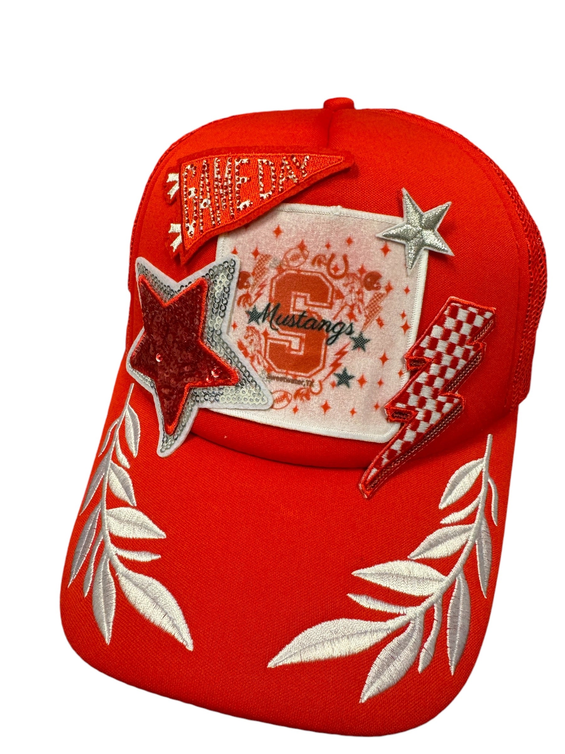 Get ready to show off your school spirit with the Sweetwater Mustangs Trucker Hat! This red foam trucker hat features sequin hat patches and a playful Captain embroidered bill. Perfect for game days or everyday wear. Go Mustangs!
