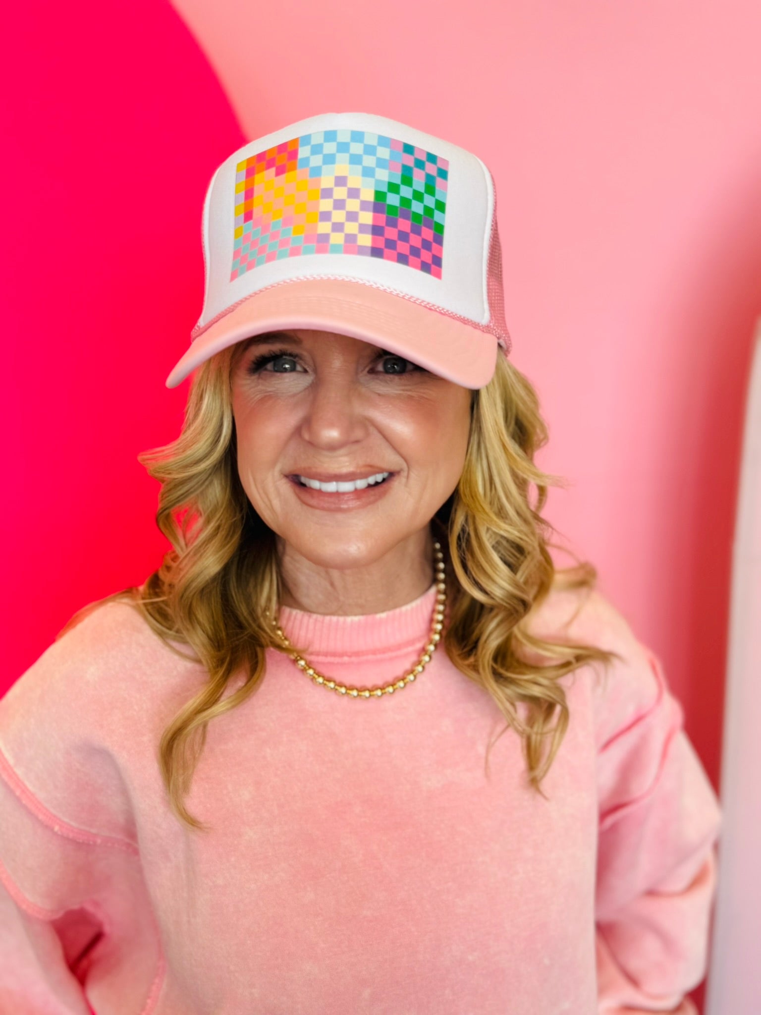 Pink Colorful Checkerboard Trucker Hat