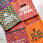 Bring festive fun to your kitchen with our Squad Ghouls Halloween Tea Towel, perfect for those who know Halloween is best with a spooky crew. This playful towel celebrates friendship and fright night with its clever “Squad Ghouls” design, making it ideal for decorating or gifting. Handcrafted in India, each towel adds a pop of color and a dash of attitude, elevating everyday chores with seasonal charm. The durable cotton fabric is soft, absorbent, and easy to wash, ensuring it’s as practical as it is stylish. Whether you’re drying dishes, lining a serving tray, or wrapping a bottle of wine as a hostess gift, this tea towel brings a touch of spooky spirit and fun-loving energy to your Halloween kitchen décor.