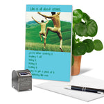 Deliver some cheeky birthday humor with the "All About Asses" card, perfect for friends who love a good laugh. The cover features a comically relatable observation: "Life is all about asses: You're either covering it, laughing it off, kicking it, kissing it, busting it, trying to get a piece of it or behaving like one." The punchline inside continues the fun, telling the recipient to "Now Get Your Ass In Gear And Celebrate." Proudly printed in the USA, this card is a hilarious and unforgettable way to wish someone the best on their special day.
