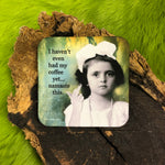 Absorbent neoprene-like material on a 4x4 inch coaster. Guaranteed to provide laughs. Great gift! Washable in dishwasher or by hand. I HAVEN'T EVEN HAD MY COFFEE YET.... NAMASTE THIS.