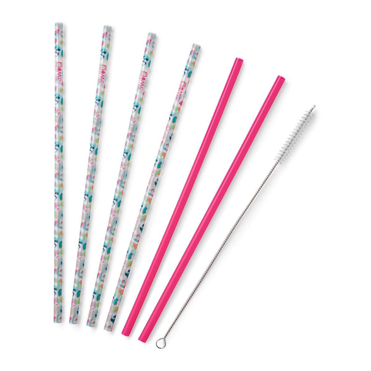 Now you can eliminate the need for those single-use straws and sip from our reusable straws! This bulk straw pack includes 6 BPA-free, plastic straws, and 1 cleaning brush. They are a perfect fit for our Swig 20oz, 22oz and 32oz tumblers or any cup of comparable size you may already own. Recommended for cold and room temperature beverages only.