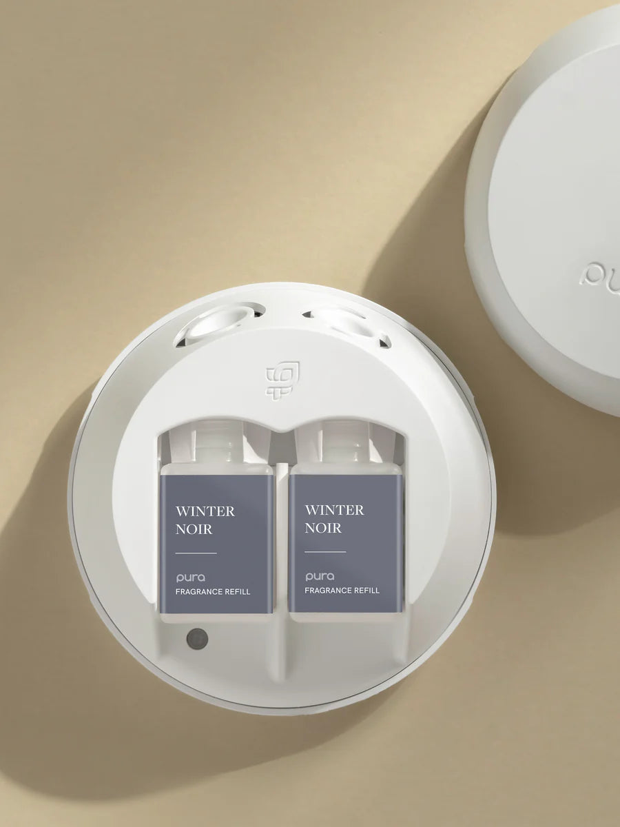 Capture the enchanting essence of the season with the Pura Winter Noir Fragrance Refill, a sophisticated blend that brings the magic of winter indoors. This luxurious scent opens with crisp notes of Sicilian bergamot, Valencia orange, Meyer lemon, and Fuji apple, creating a bright, refreshing start. The heart reveals elegant layers of Egyptian jasmine, Bulgarian lavender, marine notes, aromatic spices, and noble fir — a perfect harmony of floral warmth and forest freshness. Finally, golden amber, fresh musk, vanilla bean, and sandalwood ground the fragrance in a cozy, inviting finish. Thoughtfully crafted without harsh chemicals, this refill transforms your home into a serene winter retreat filled with comfort and mystery.