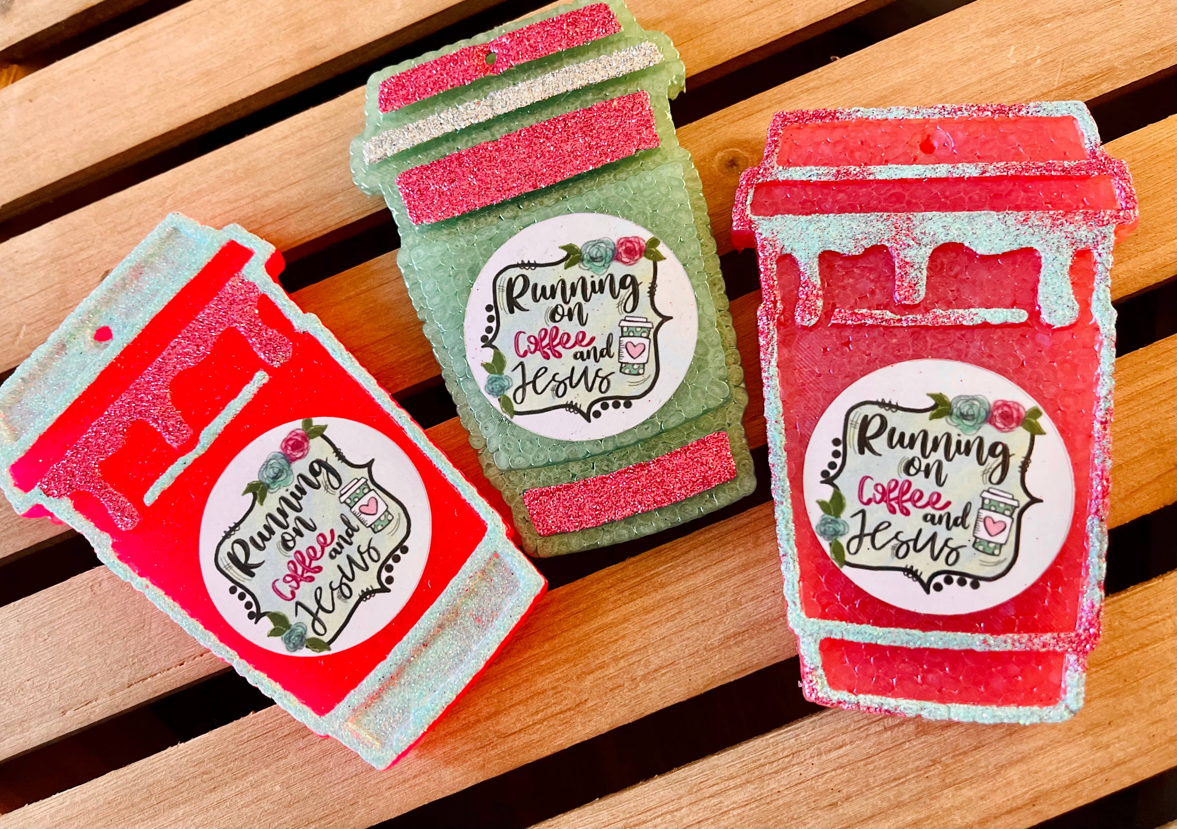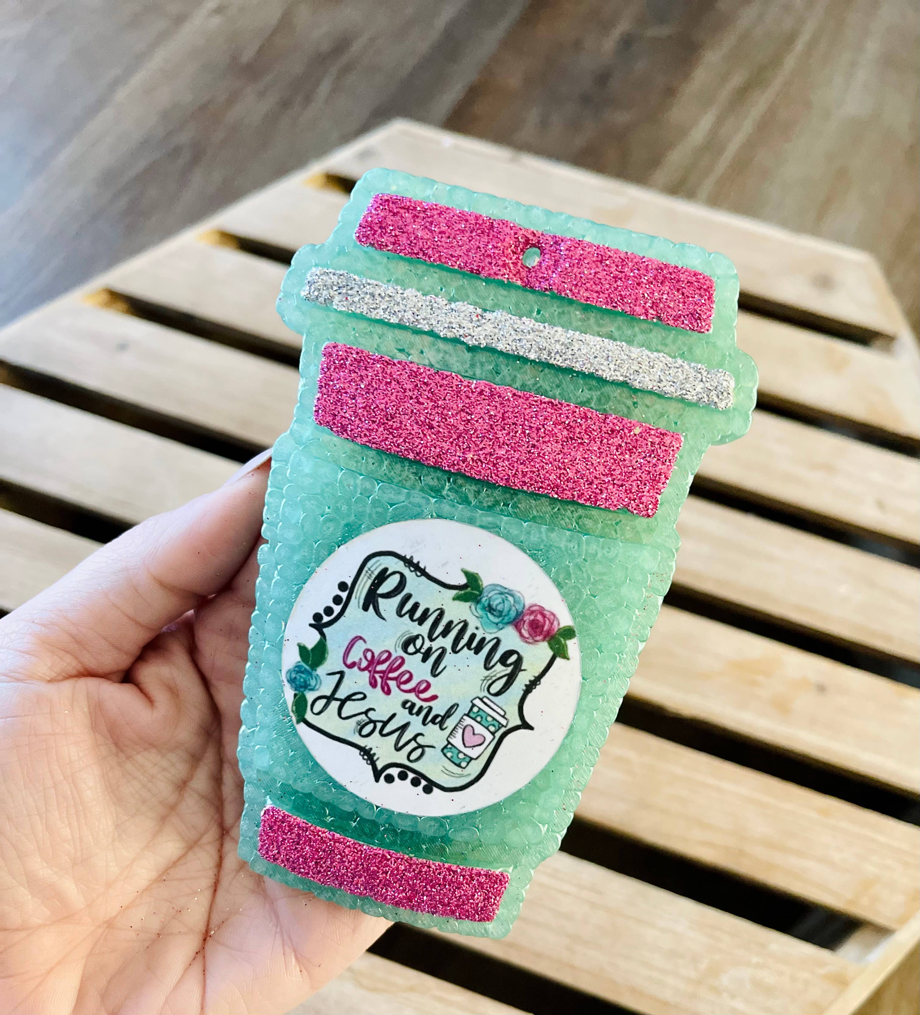 Running on Coffee and Jesus Coffee Cup Car Freshie